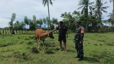 Cegah PMK, Babinsa Koramil 1404-01/Suppa Pantau Hewan Ternak Warga