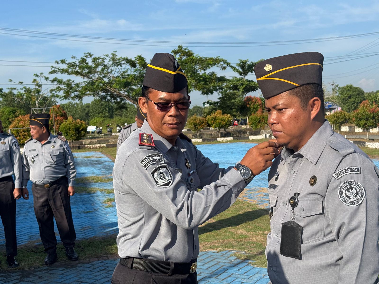 Banjarbaru, INFO_PAS – Delapan petugas Lembaga Pemasyarakatan (Lapas) Kelas IIB Banjarbaru mendapat kenaikan pangkat setingkat lebih tinggi melalui kenaikan pangkat reguler. Mereka disematkan tanda kenaikan pangkat oleh Kepala Lapas, I Made Supartana, dalam apel pagi pegawai di Halaman Kantor Lapas, Selasa (10/6).