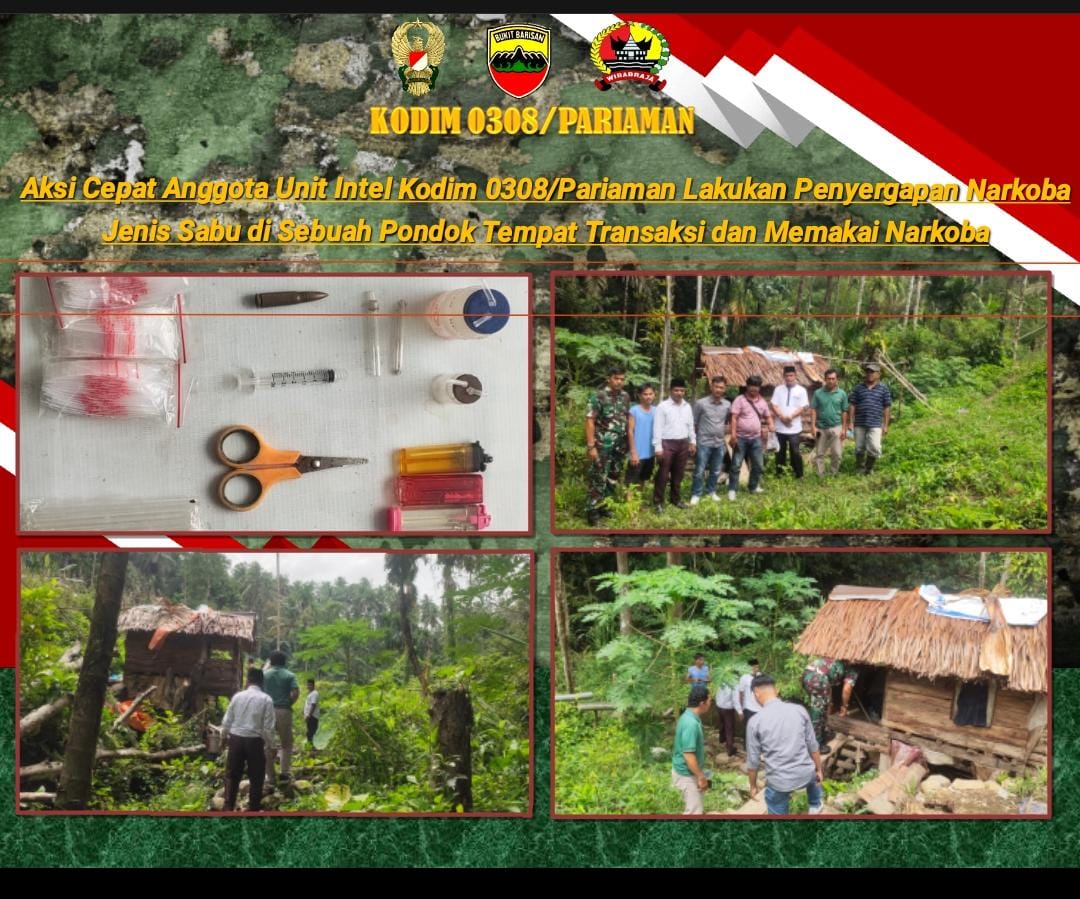 SUNGAI GERINGGING, – Anggota Unit Intel Kodim 0308/Pariaman melakukan Penyergapan Narkoba Jenis Sabu di Sebuah Pondok Tempat Transaksi dan Memakai Narkoba Jenis Sabu, Korong Ladang Rimbo Barat, Nagari Sungai Sirah Kuranji Hulu, Kecamatan Sungai Geringging, Selasa (05/08/2025).
