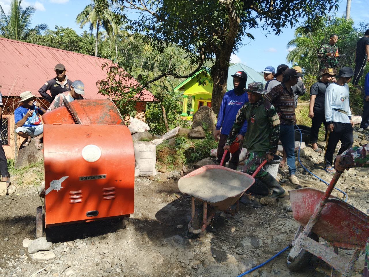 Seperti nampak terlihat pada kegiatan pengecoran jalan, Komandan Koramil (Danramil) 08/Tanete Riaja Lettu Inf Bahtiar bersama anggotanya dan staf Kecamatan Pujananting serta masyarakat melaksanakan karya bakti pengecoran jalan di Salopuru, Desa Pattappa, Kecamatan Pujananting, Kabupaten Barru. Rabu (09/07/2025)