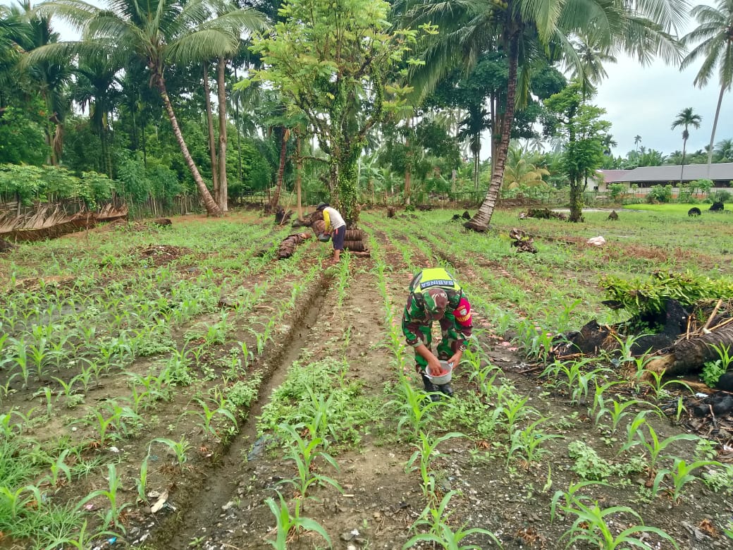 Aksi Nyata Dukung Ketahanan Pangan, Babinsa Koramil 07/KS Bantu Petani Lakukan Pemupukan Lahan Jagung