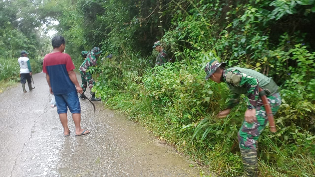 Pada kesempatan tersebut Pelda Yudin Djoni melaksanakan gotong-royong bersama masyarakat membersihkan sampah dan rumput liar di pinggir badan jalan di wilayah binaan tersebut, kondisi tersebut mendorong Babinsa mengajak masyarakat untuk bergotong royong guna melaksanakan pembersihan rumput dan sampah sehingga nantinya membuat kondisi jalan menjadi kelihatan bersih dan terpelihara.