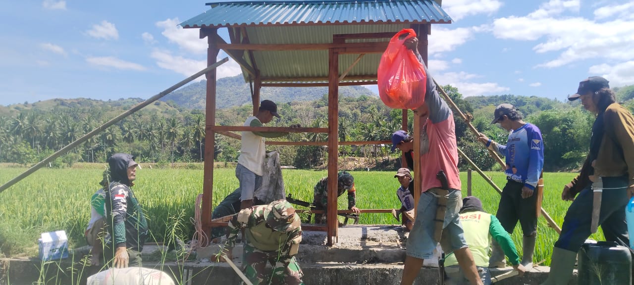 “Kerja bakti pembuatan tempat pompa air juga merupakan bentuk kemanunggalan TNI dan Masyarakat agar terjalin keakraban dan sebagai tali silaturahmi”. ucap Babinsa.