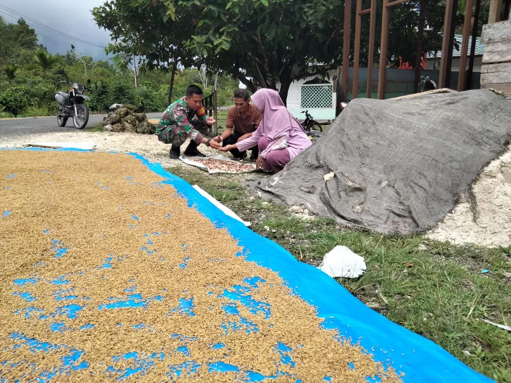 Praka Mitra Gunawan menuturkan kegiatan ini merupakan bentuk kemanunggalan TNI bersama rakyat demi mewujudkan swasembada pangan nasional Babinsa turun ke lapangan membantu petani untuk mengangkut hasil panen padi untuk di jemur.