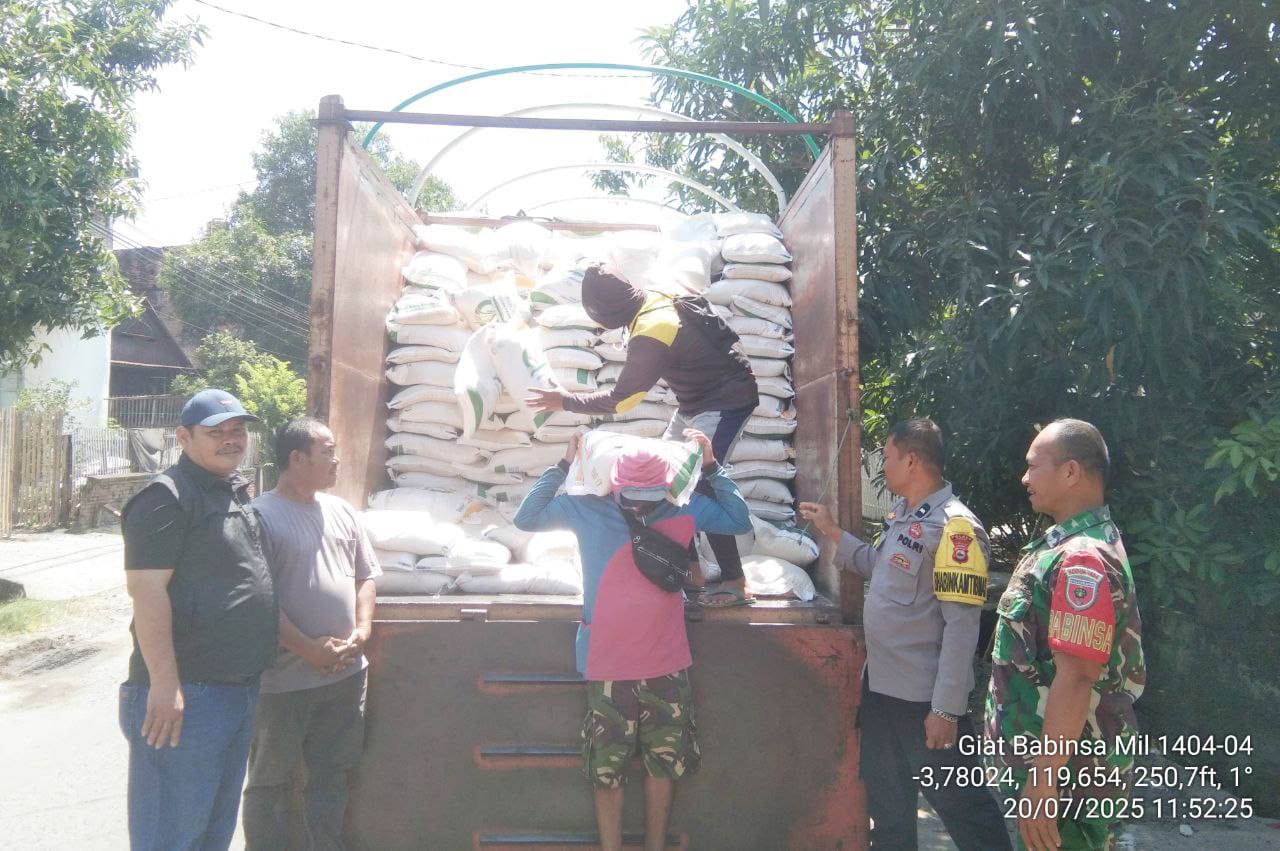Pinrang_ Upaya menjaga keamanan dan memastikan penyaluran bantuan sosial berjalan lancar terus dilakukan oleh Babinsa Koramil-04/Paleteang Kodim 1404/Pinrang dan Bhabinkamtibmas Polres Pinrang.