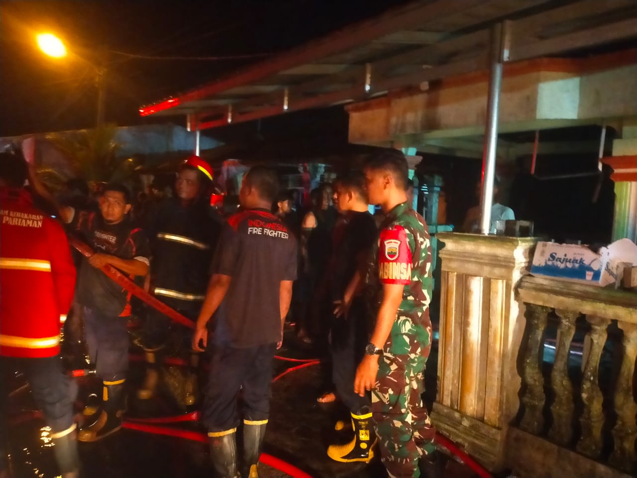 MendapatLaporan dari salah satu Masyarakat bpk Mukhlis, Piket Koramil 01/Prm langsung meluncur kelokasi untuk selanjutnya membantu proses pemadaman Api,selanjutnya melakukan pendataan.