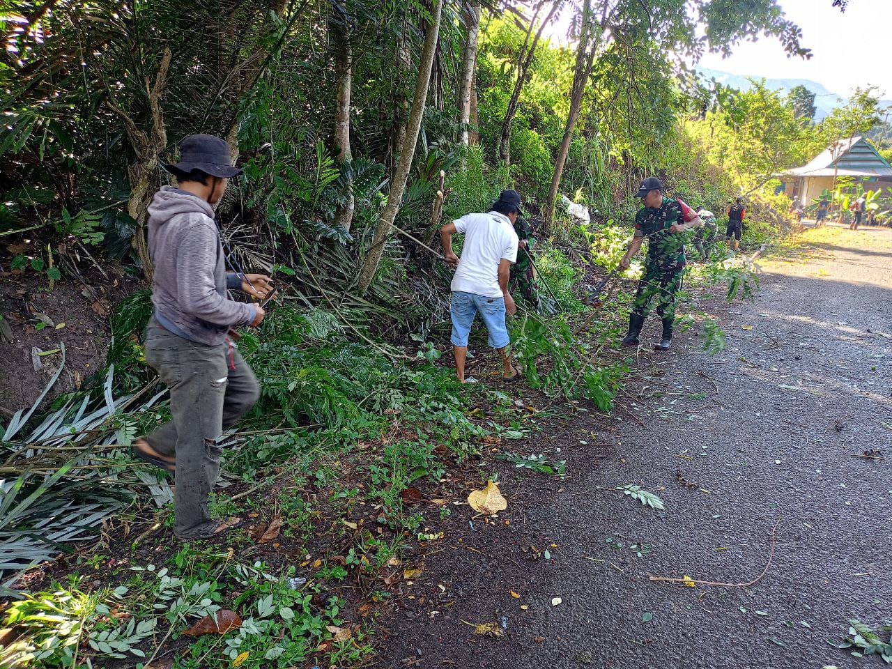Personil Babinsa Koramil 03/Baraka Kodim 1419/Enrekang bersama warga bergotong – royong melaksanakan karya bakti pembersihan dreinase dari tanah, rumput dan sampah lainnya sepanjang 150 meter di Dusun Buntu Billa Desa Bone-Bone Kec. Baraka Kab. Enrekang, Senin 21/07/2025