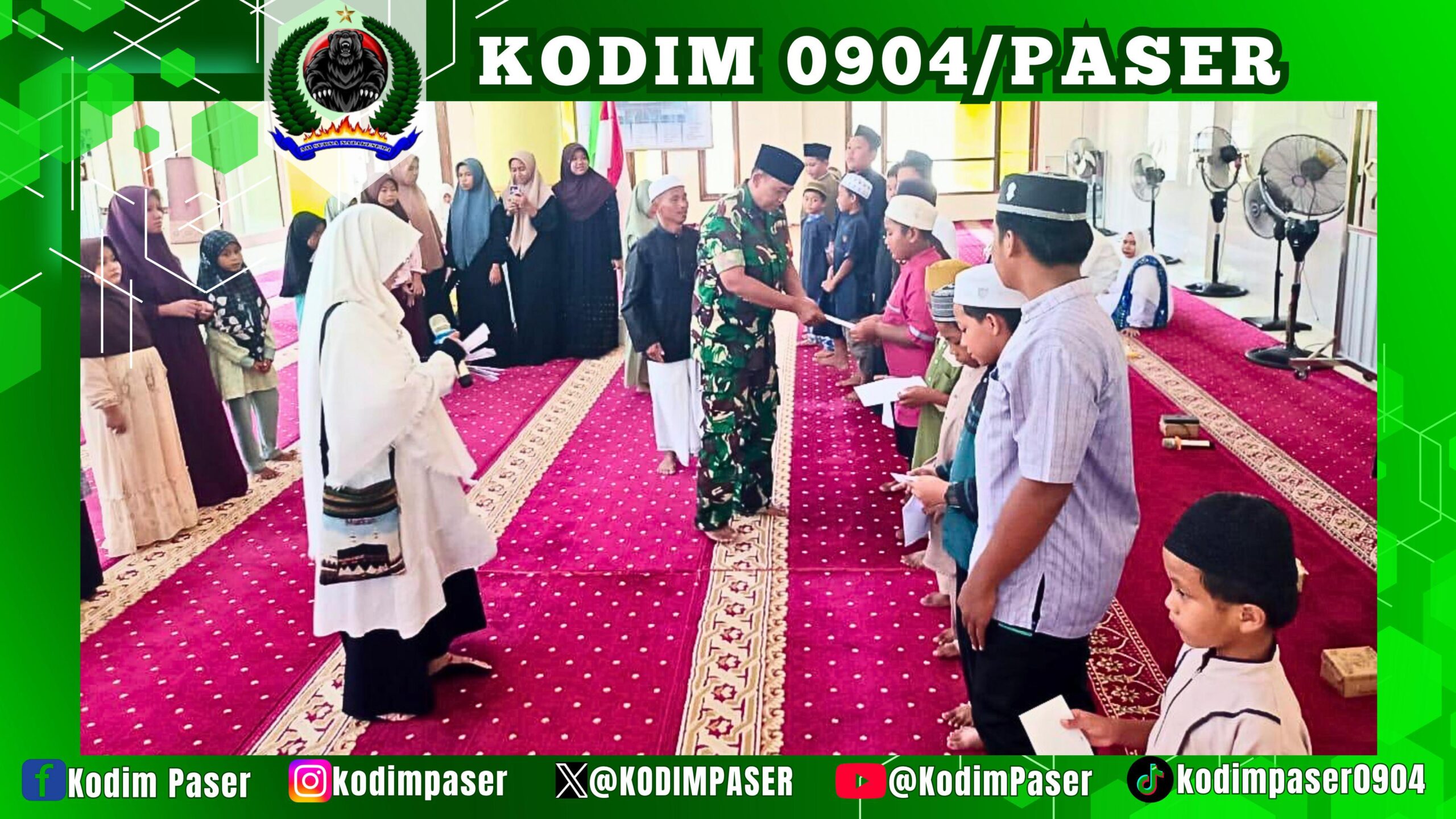 Kodim 0904/Psr, Korem 091/ASN, Kodam VI/Mlw – Babinsa Desa Muser Sertu Wahono mengikuti kegiatan Penyerahan Bantuan Santunan Anak Yatim Piatu bertempat di Masjib Baiturohman Desa Muser, Kec. Muara Samu, Kab. Paser. Selasa (8/7/2025)