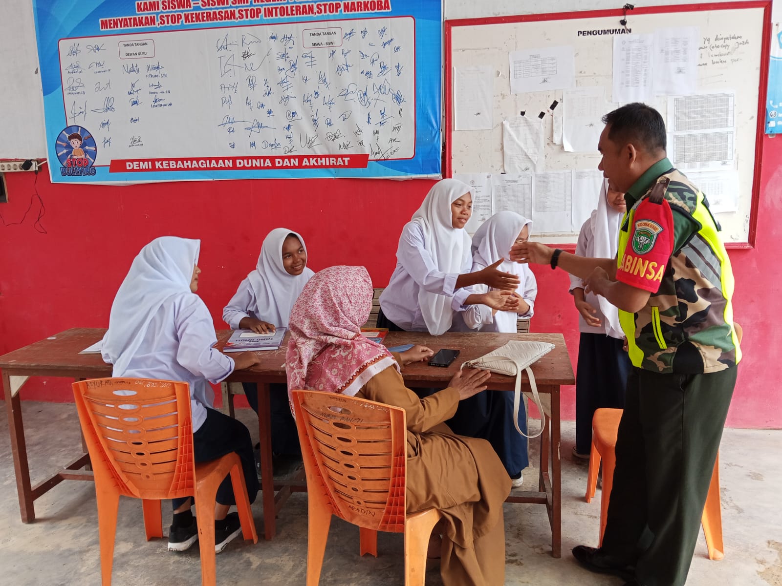 “Belajarlah dengan sungguh-sungguh, jangan pernah saling merundung. Kalian semua adalah modal masa depan bangsa dan kebanggaan orang tua. Raih cita-cita setinggi mungkin agar kelak bisa sukses serta membawa nama baik keluarga dan daerah,” pesan Sertu Damanik di hadapan para siswa.