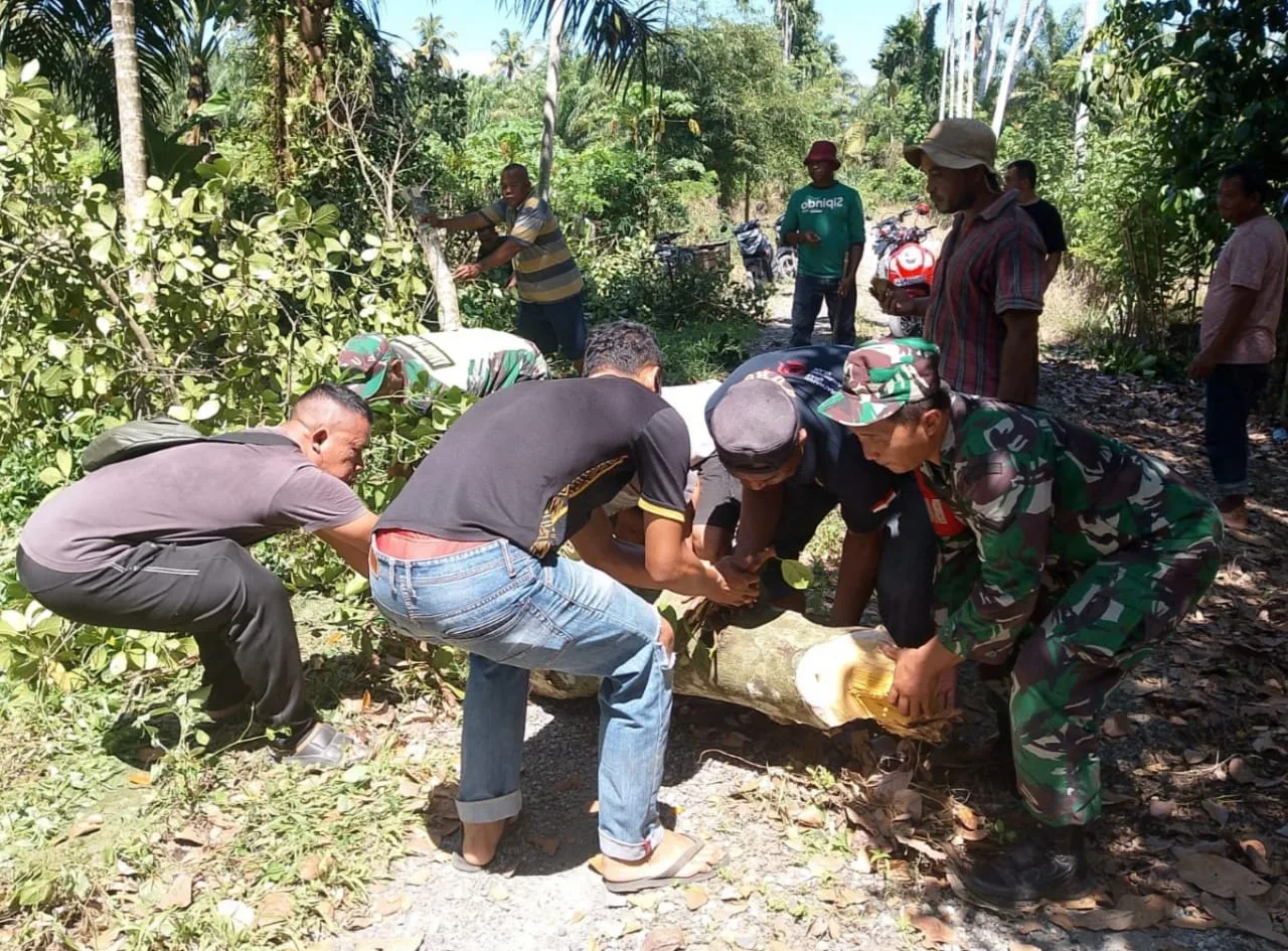 Nagan Raya – Babinsa Koramil 01/Kuala Serda Herly Sunaryo melaksanakan kegiatan gotong royong membersihkan pohon tumbang yang menghalangi jalan di desa Ujong Sikuneng Kecamatan Kuala. Kegiatan ini bertujuan untuk memastikan kelancaran lalu lintas dan keamanan masyarakat. Selasa (28/10/2025).