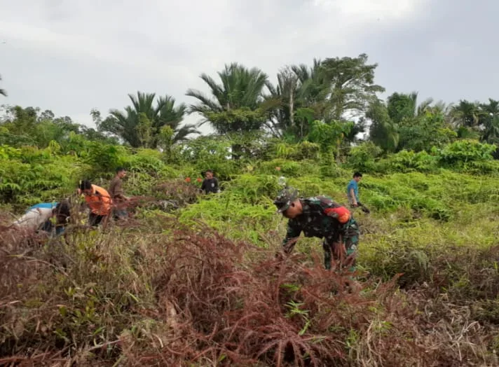 Simeulue – Serda Yatno Babinsa Koramil 06/Teluk Dalam, Kodim 0115/Simeulue, Korem 012/Teuku Umar. Melaksanakan gotong royong dengan warga desa Gunung Putih, Kecamatan Teluk Dalam, Kabupaten Simeulue. Senin (05/01/2026).