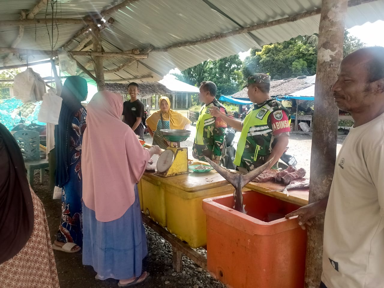 Nagan raya, Babinsa Posramil Suka Makmue kodim 0116/ Nara selalu meluangkan waktu guna membangun komunikasi yang baik bersama masyarakat di wilayah binaanya, salah satunya dengan menyambangi pedagang ikan tradisional di desa Lueng baroe kecamatan Suka Makmue kabupaten Nagan raya,untuk berinteraksi bersama para pedagang ayam potong juga berikan himbauan agar selalu tetap menjaga kebersihan dan kerapian dagangannya baik pas lagi jualan setelah selesai berjualan, Minggu ( 06/07/2025).
