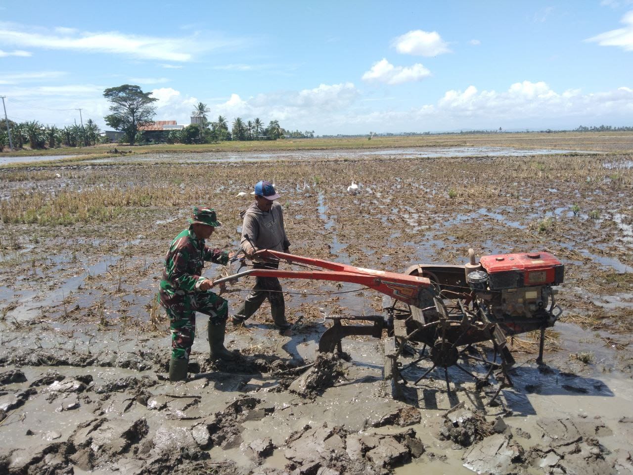 “Dengan dibantunya pengolahan lahan ini, diharapkan dapat meringankan pekerjaan petani dalam rangka mewujudkan program pemerintah bidang pertanian”, ungkap Babinsa.