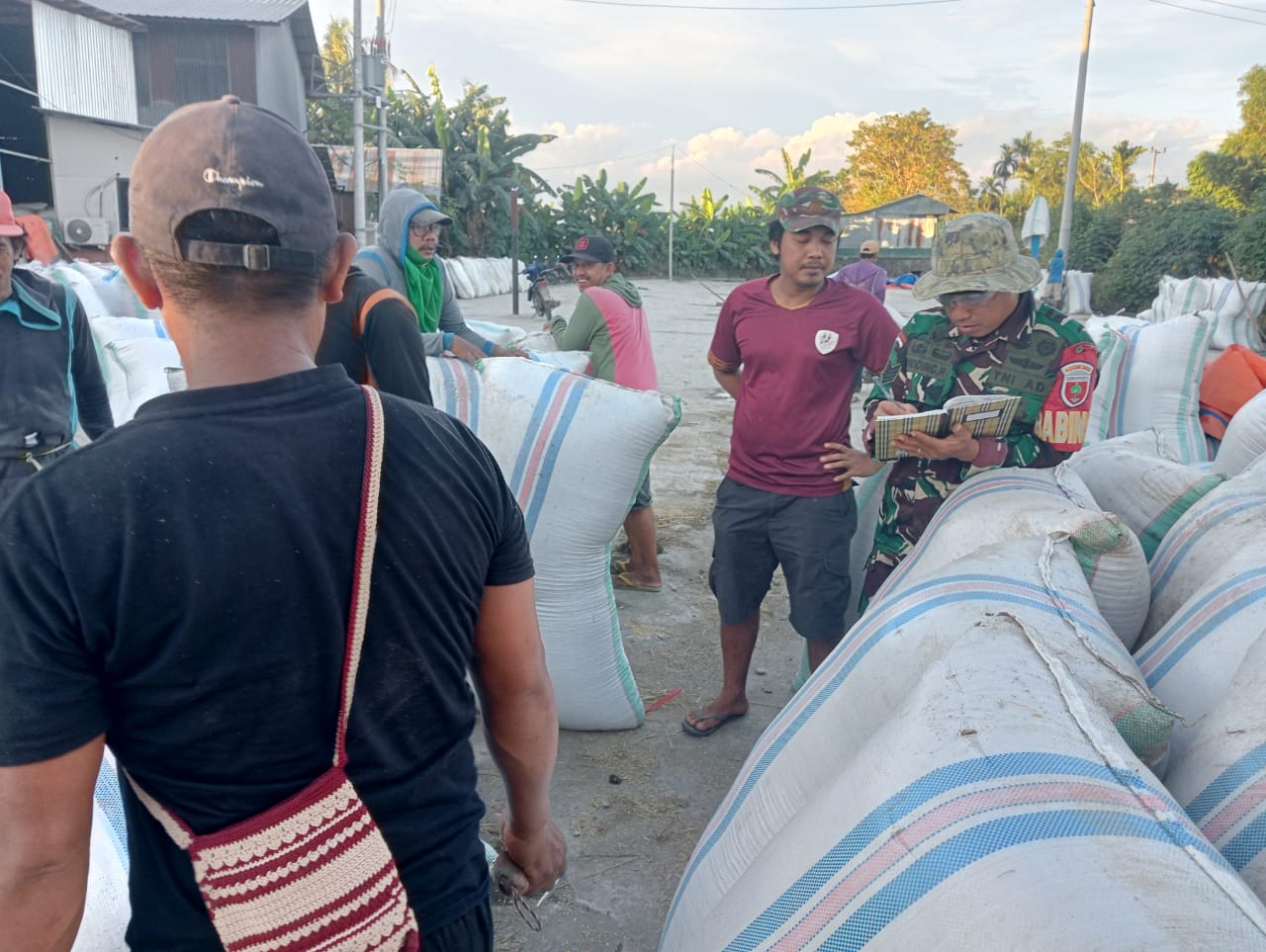 Pinrang_ Untuk meyakinkan gabah hasil panen petani terserap semua, Babinsa Koramil-06/Duampanua Kodim 1404/Pinrang Serma Pudding mendampingi petani mengantar langsung gabah hasil panen ke penggilingan mitra Bulog UD. Mustika Tani di Desa Kaliang Kecamatan Duampanua Kabupaten Pinrang, Minggu (20/04/2025).