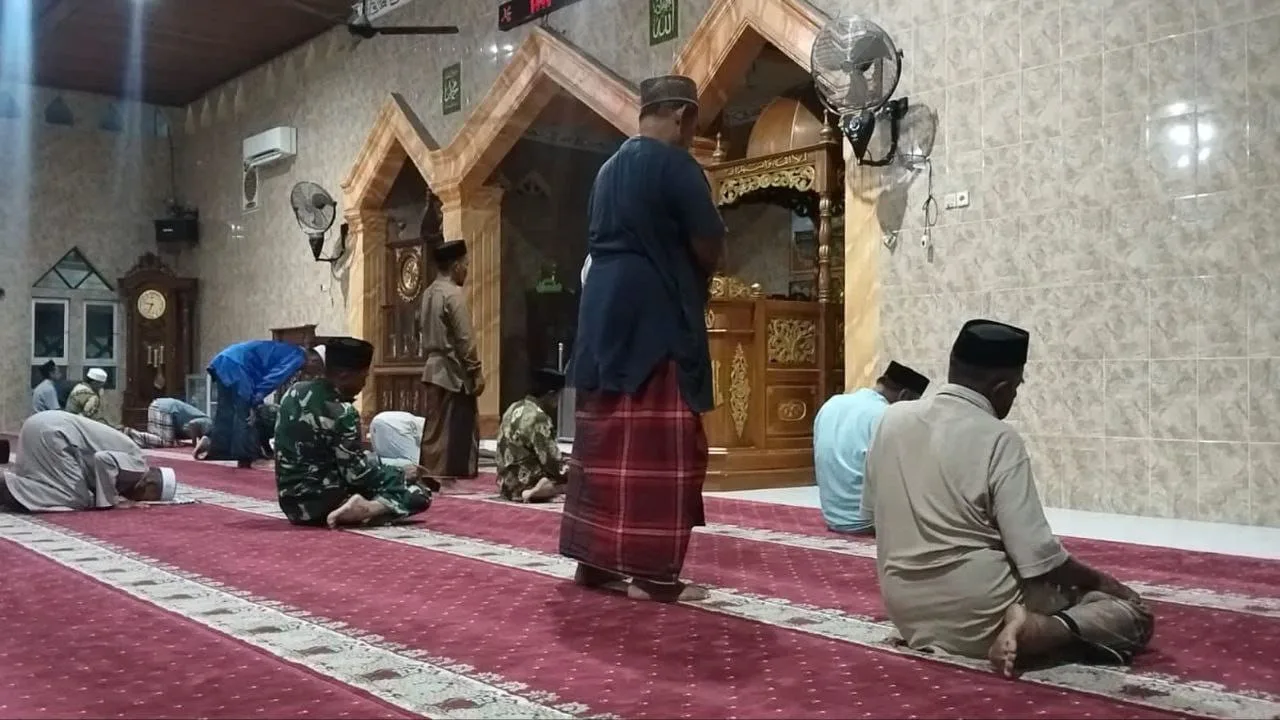 Selain melaksanakan ibadah bersama, Babinsa juga memanfaatkan momen tersebut untuk berkomunikasi langsung dengan warga terkait kondisi keamanan dan ketertiban lingkungan.