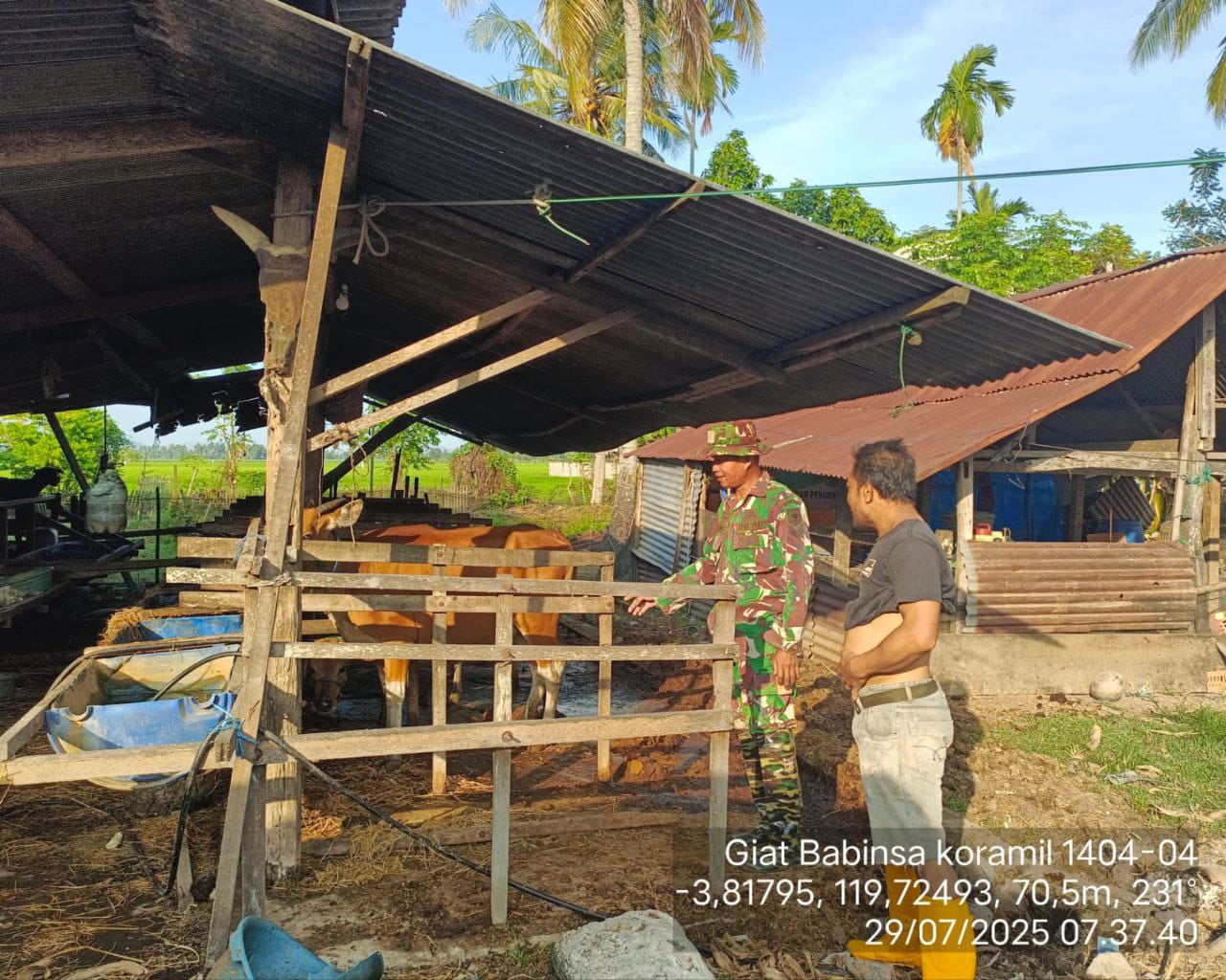 Babinsa Kodim 1404/Pinrang Pantau PMK Ternak Sapi Milik Warga Di Wilayah Binaan