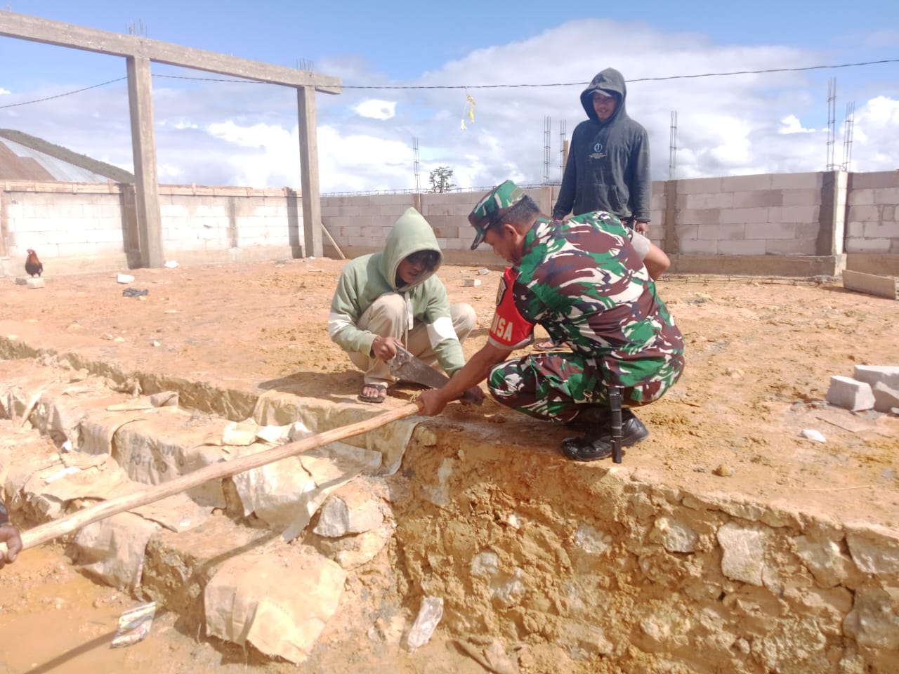 Paniai – Babinsa Koramil 1703-01/Enarotali, Kampung Awabutu, Kodim 1703/Deiyai, Serka La Yamin melaksanakan kegiatan Komunikasi Sosial dengan Masyarakat yang berprofesi sebagai Pekerja Proyek Bangunan, di kampung Awabutu, Distrik Paniai Timur, Kabupaten Paniai. Pada Senin (22/09/2025).