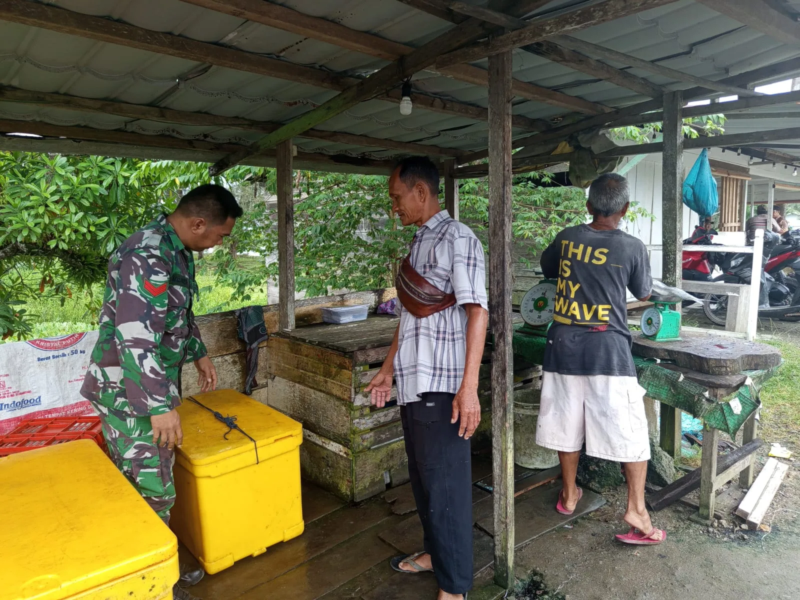 Simeulue – Koptu M. Ridho Sipayung Babinsa Posramil teupah Barat, Kodim 0115/Sml, Korem 012/Tu, melaksanakan komsos dengan penjual ikan di Desa Salur, Kecamatan Teupah Barat, Kabupaten Simeulue. Selasa (17/03/2026).