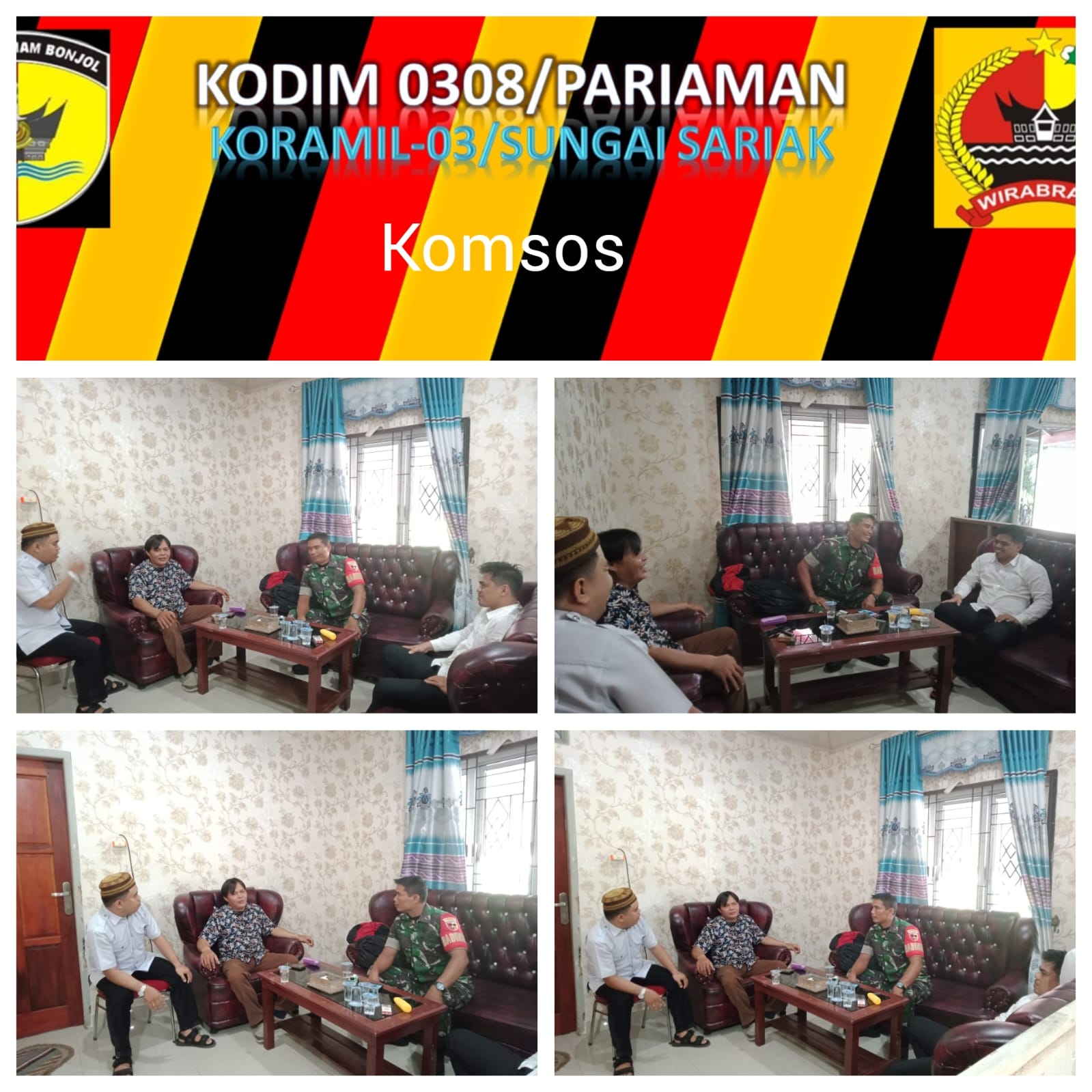 Komsos yang dilaksanakan oleh Babinsa merupakan sarana dalam menjalin hubungan silaturahmi dengan perangkat Nagari sehingga dengan cepat dalam memperoleh informasi yang ada di daerah binaan.