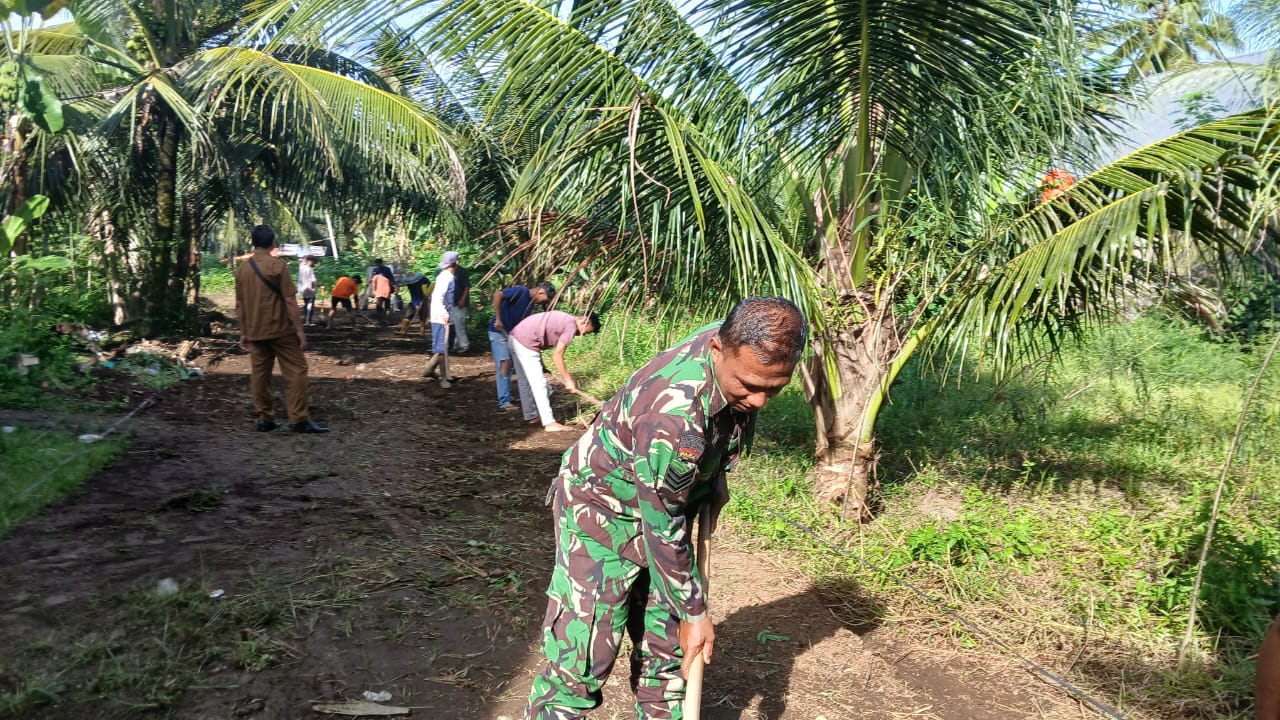 PARIAMAN,- Babinsa Koramil 01/Pariaman Kodim 0308/Pariaman Serka Syafriandi Menghadiri undangan Pembangunan jalan Rabat Beton menggunakan Anggaran Desa Tahun 2025 di Desa Sikapak Barat, Kec. Pariaman Utara, Kota Pariaman, Senin (21/04/2025).