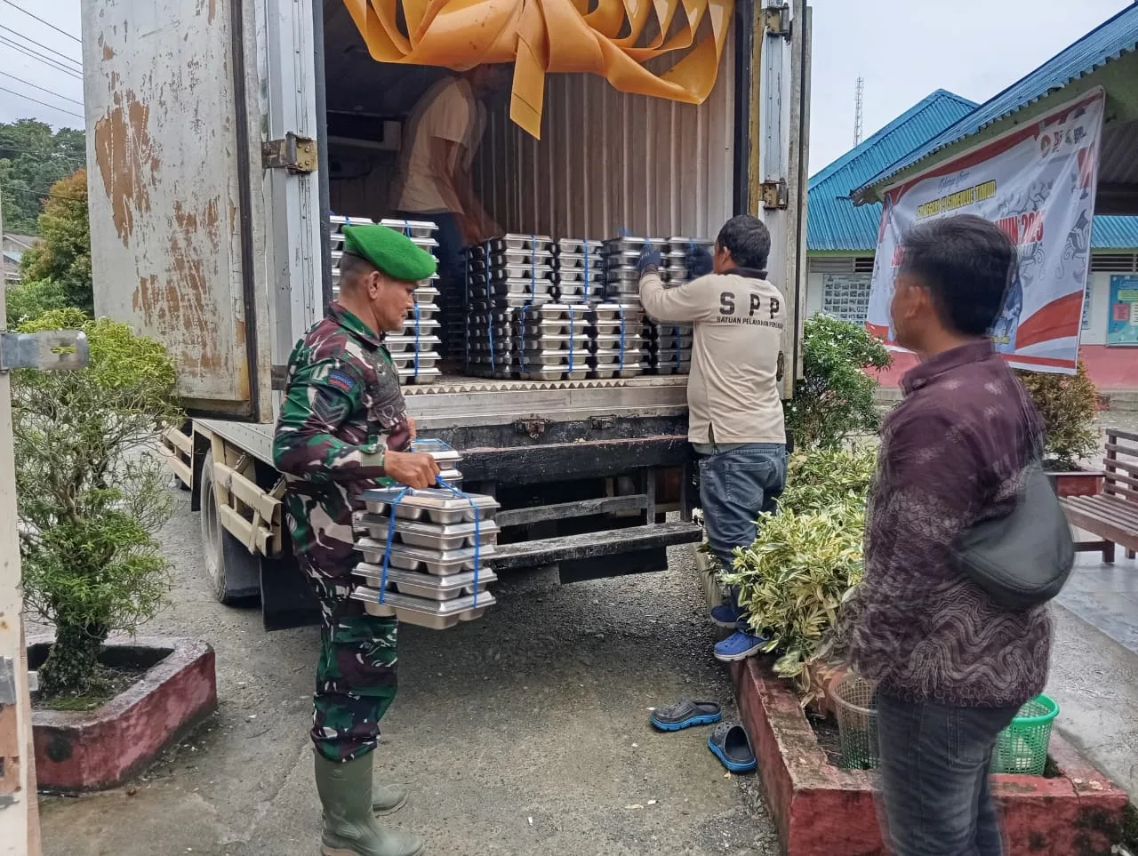 Simeulue – Sertu David Babinsa Koramil 01/Simeulue Timur, Kodim 0115/Simeulue, Korem 012/Teuku Umar. Melaksanakan kegiatan pendampingan Makan Bergizi Gratis (MBG) Di, Kecamatan Simeulue Timur, Kabupaten Simeulue. Rabu (26/11/2025).