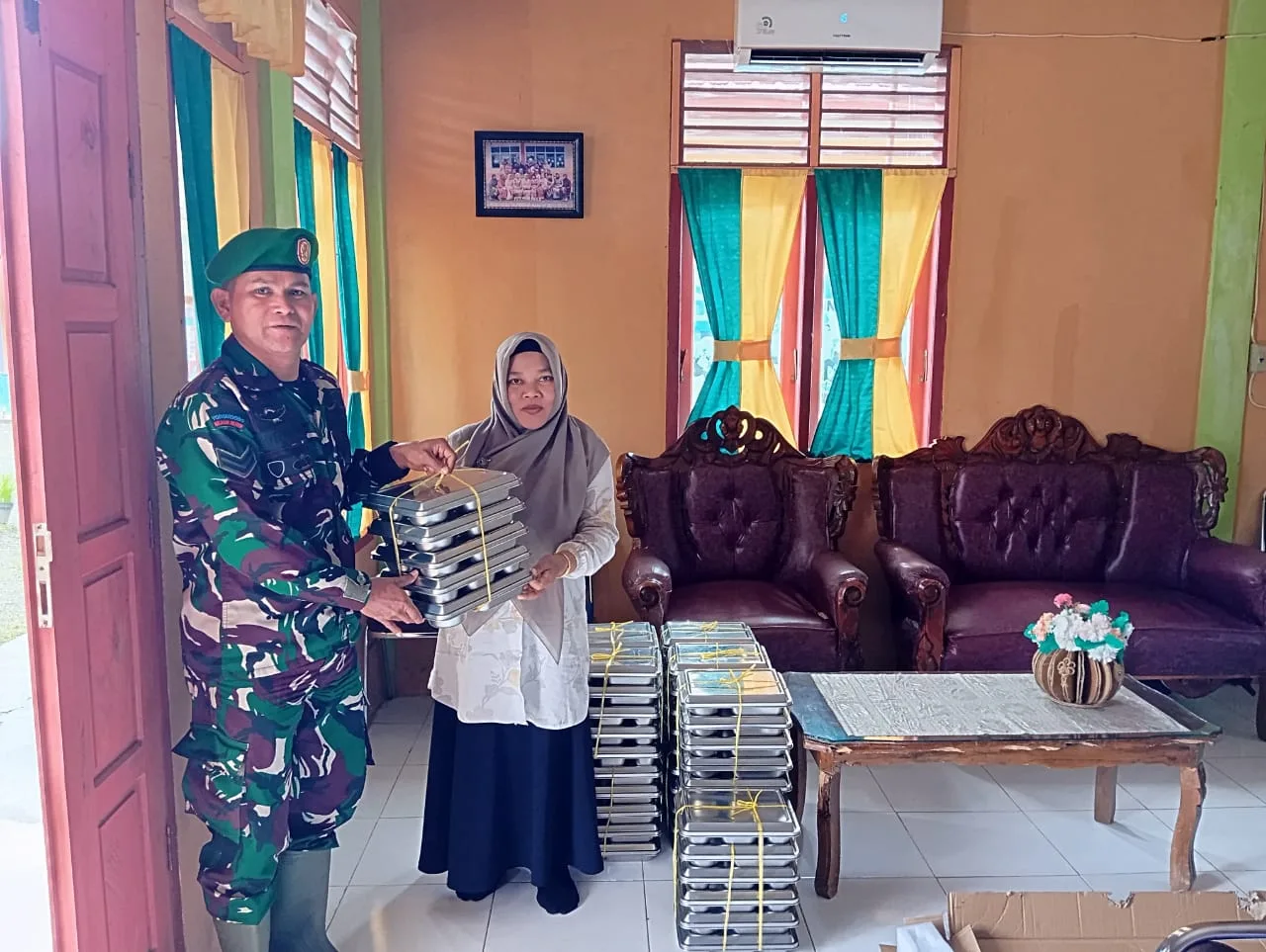 Simeulue – Sertu David Babinsa Koramil 01/Simeulue Timur, Kodim 0115/Simeulue, Korem 012/Teuku Umar. Melaksanakan kegiatan pendampingan Makan Bergizi Gratis (MBG) Di, Kecamatan Simeulue Timur, Kabupaten Simeulue. Sabtu (06/12/2025).