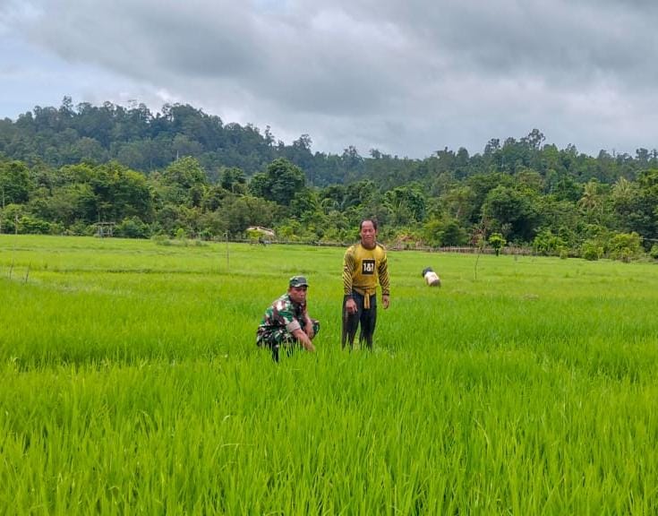 Simeulue – Koptu Jufri Babinsa Koramil 01/Simtim, Kodim 0115/Simeulue, Korem 012/Teuku Umar. Melaksanakan pengecekan padi bersama warga di Desa Kota Batu, Kecamatan Simeulue Timur, Kabupaten Simeulue. Sabtu (20/09/2025).