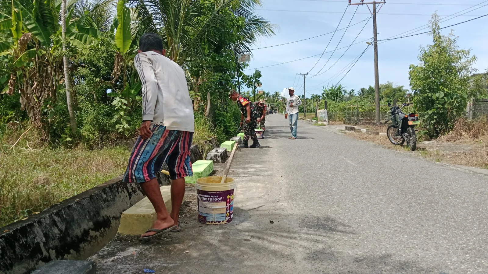 Kegiatan tersebut meliputi pembersihan jalan desa, pengecatan batas jalan, serta perawatan sejumlah fasilitas umum.