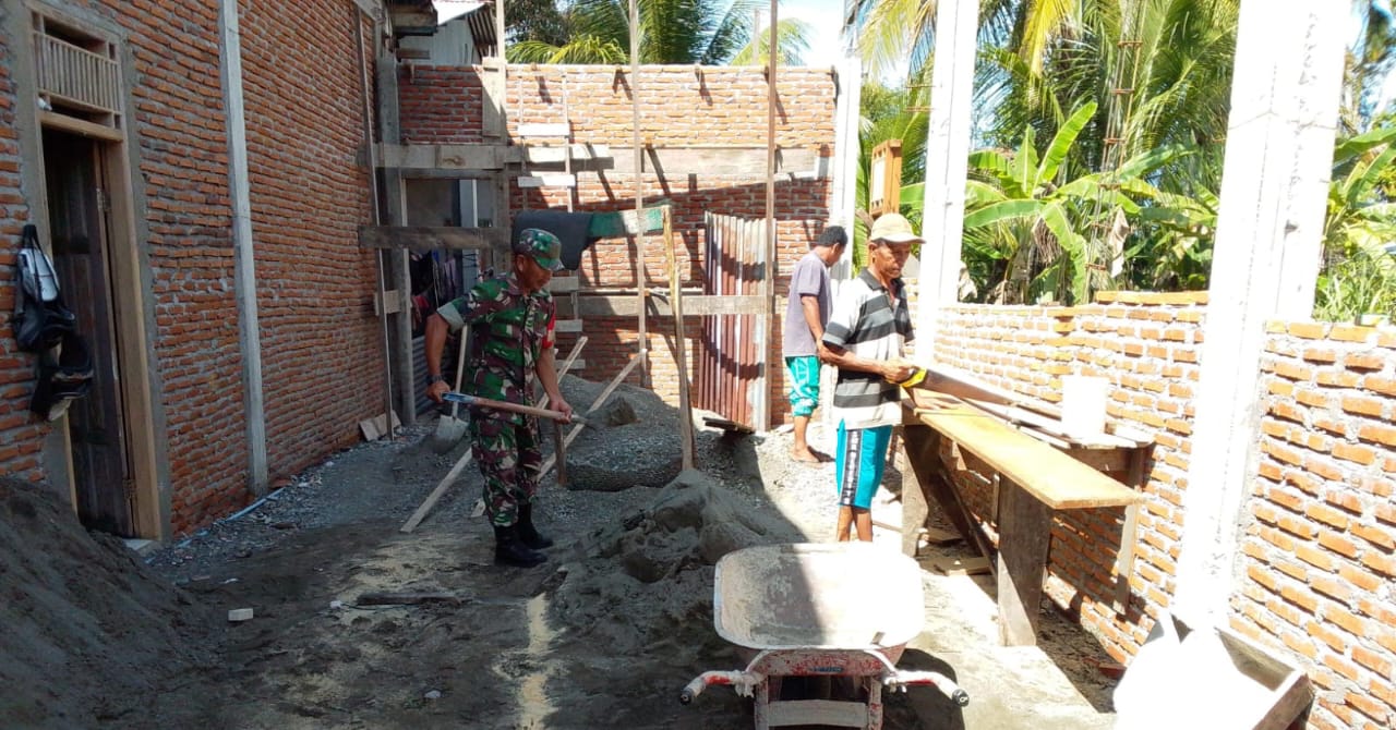 Nagan Raya – Babinsa Koramil 02/Seunagan,Kodim 0116/Nara. Serma Budiman Melaksanakan karya bhakti bantu ringankan beban warga dalam rangka pembagunan Rumah yang bertempat di Desa Sapek Kecamatan Seunagan Kabupaten Nagan Raya, Senin (21/07/2025).