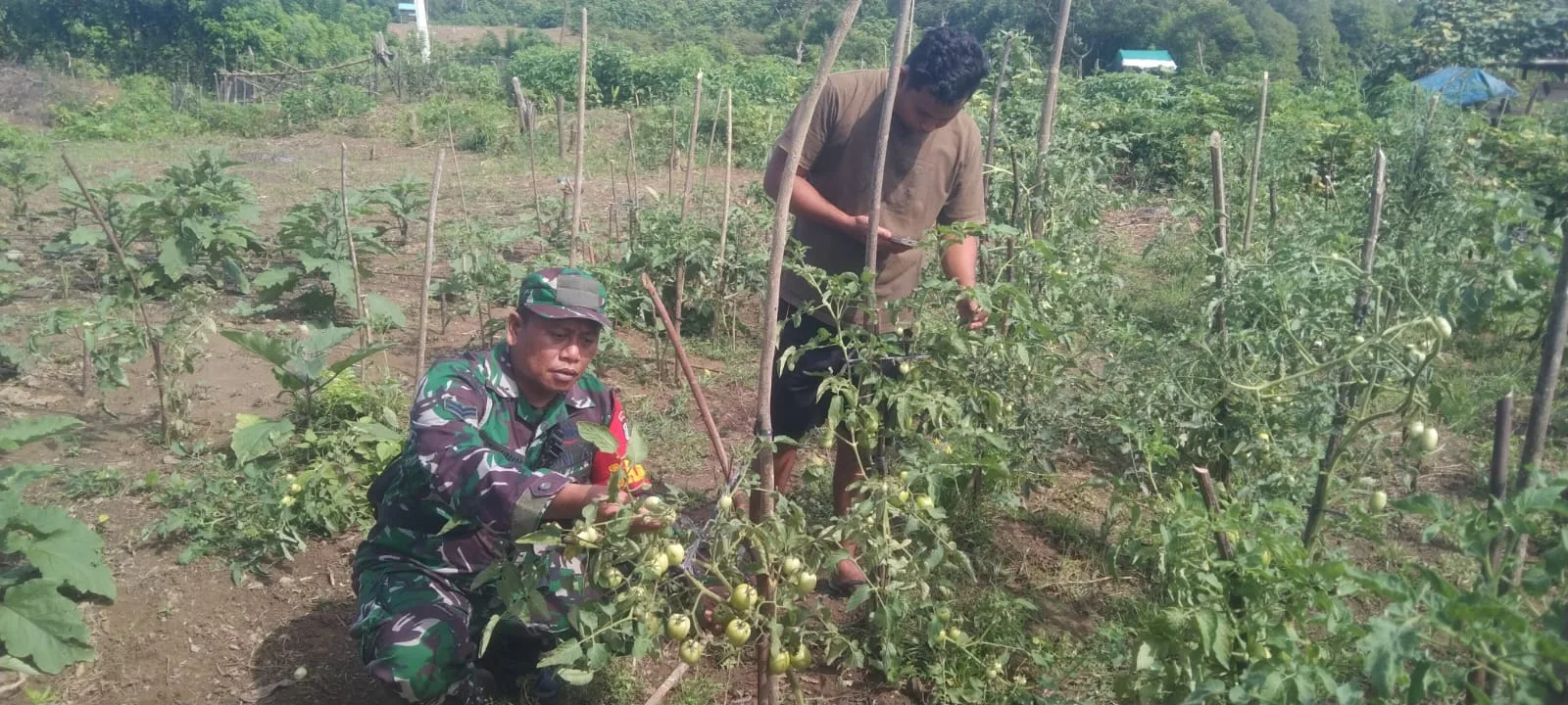 Babinsa turun langsung ke kebun milik warga yang ditanami sayuran tomat kegiatan tersebut berdampak positif bagi warga karena dapat menggugah semangat warga untuk bercocok tanam dan ini merupakan salah satu bentuk kedekatan Babinsa dengan masyarakat yang berada dalam desa binaan nya,dan juga saling memotivasi masyarakat dan saling menghargai antara masyarakat dan babinsa didesa binaannya.