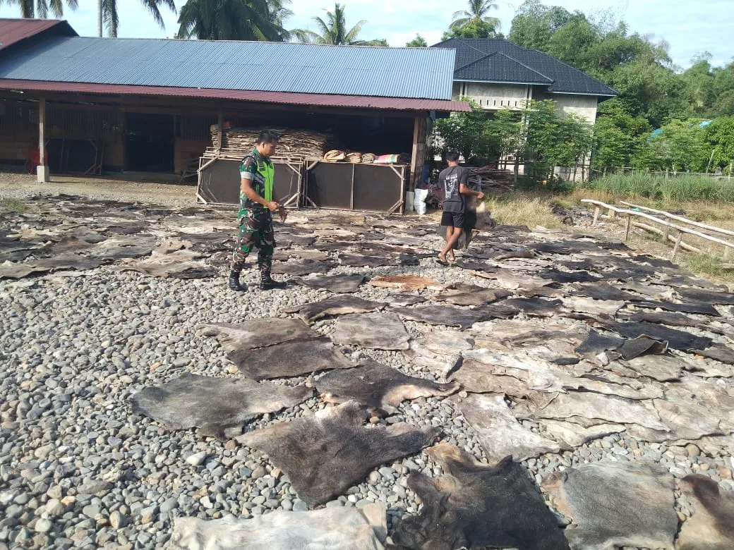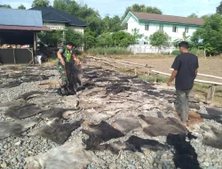 PIDIE – Wujud kepedulian TNI terhadap peningkatan kesejahteraan masyarakat terus ditunjukkan melalui aksi nyata di wilayah binaan. Babinsa Koramil 03/Delima Kodim 0102/Pidie, Serda Dedi Syahputra, melaksanakan kegiatan pendampingan dengan membantu warga menjemur kulit sapi yang akan diolah menjadi kerupuk kulit di Desa Tanjung, Kecamatan Delima, Kabupaten Pidie, Rabu (28/01/2026).