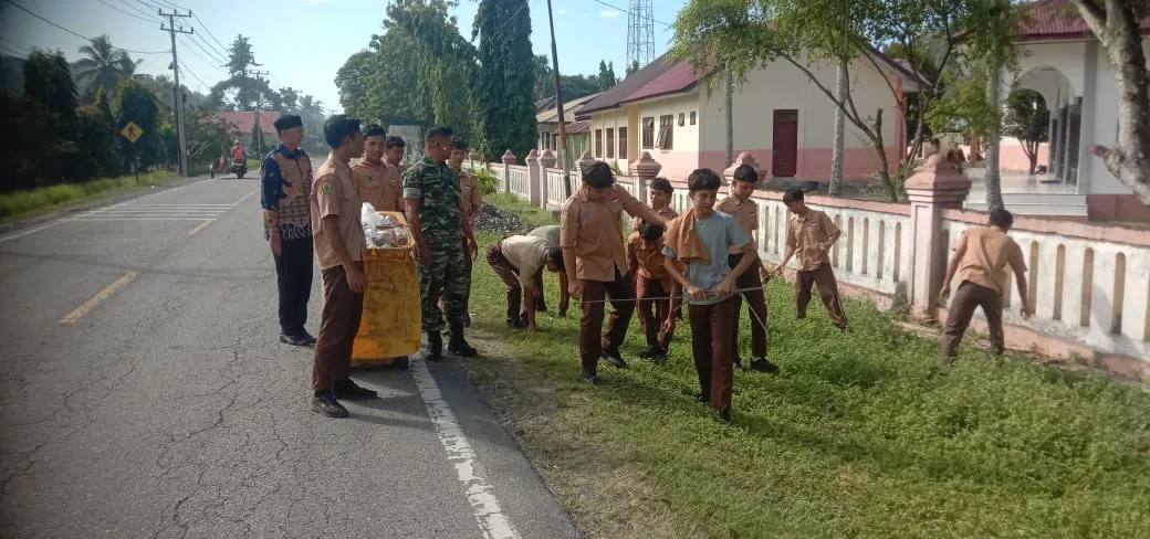 Babinsa Koramil 03/Meukek Ajak Siswa SMA Negeri 1 Meukek Gotong Royong Jaga Kebersihan Lingkungan Sekolah