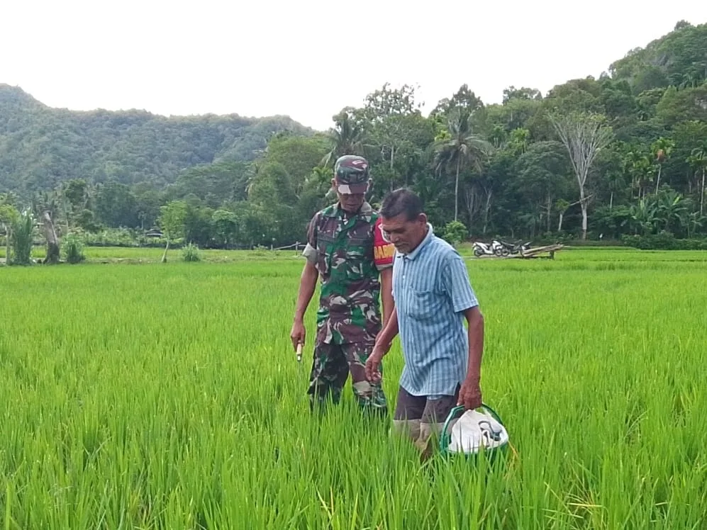 Babinsa Koramil 03/Meukek Dampingi Petani Desa Ie Buboh dalam Upaya Tingkatkan Ketahanan Pangan
