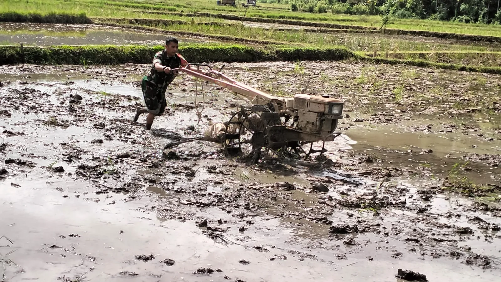 ‎Meski medan berlumpur dan cuaca tidak menentu, langkah Sertu Rahmad tidak pernah surut. Ia bahu-membahu bersama petani, mulai dari meratakan tanah hingga memastikan persiapan lahan sesuai tahapan pertanian modern.