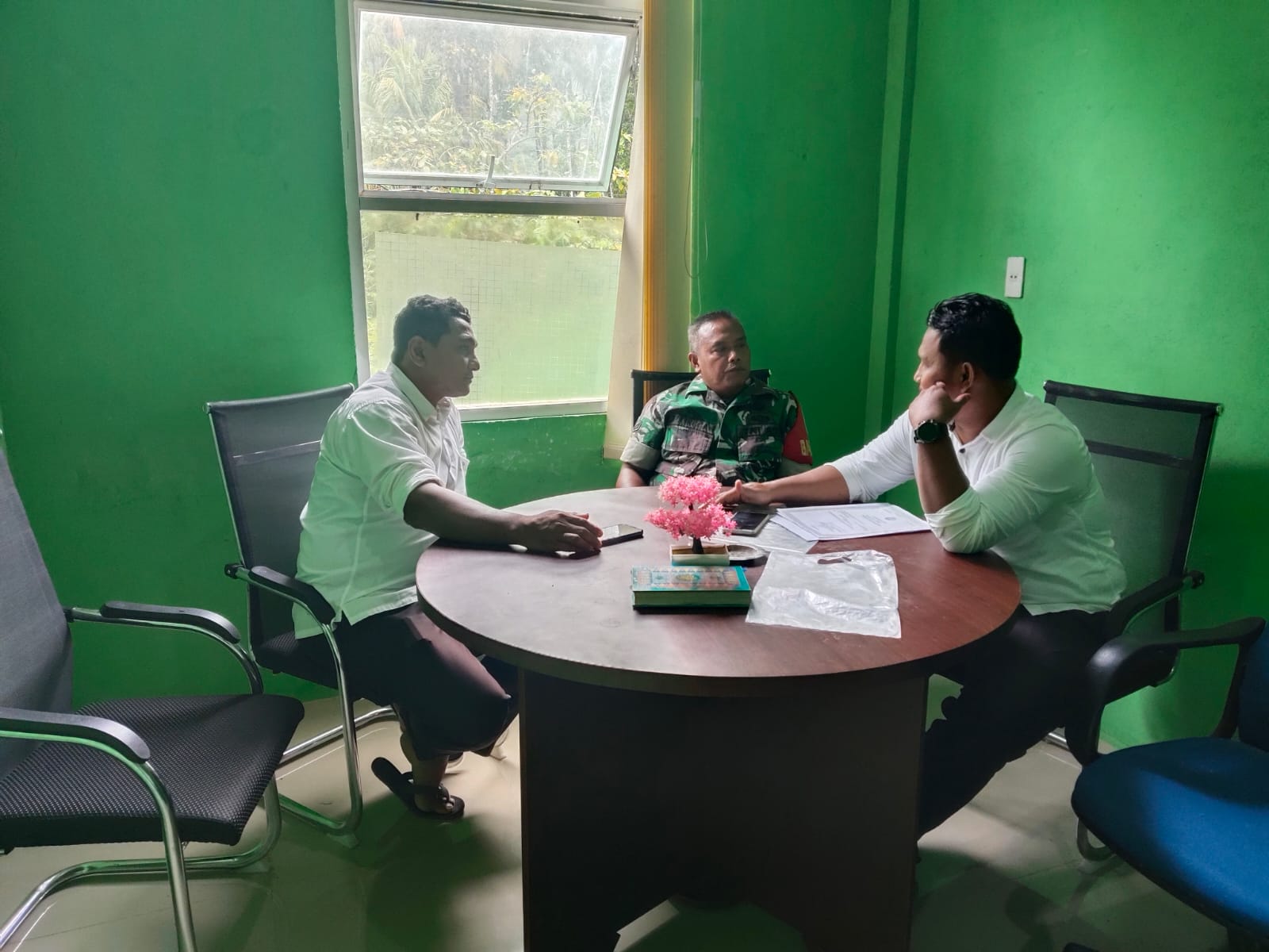 ‎Dalam kegiatan tersebut, Babinsa Sertu Wahyuni disambut langsung oleh Kepala KUA Kecamatan Sawang beserta staf. Keduanya terlibat dalam diskusi santai namun penuh makna membahas sejumlah hal, di antaranya upaya bersama menjaga keharmonisan masyarakat, meningkatkan kesadaran hukum pernikahan, serta peran KUA dan Babinsa dalam menciptakan masyarakat yang religius dan sejahtera.
