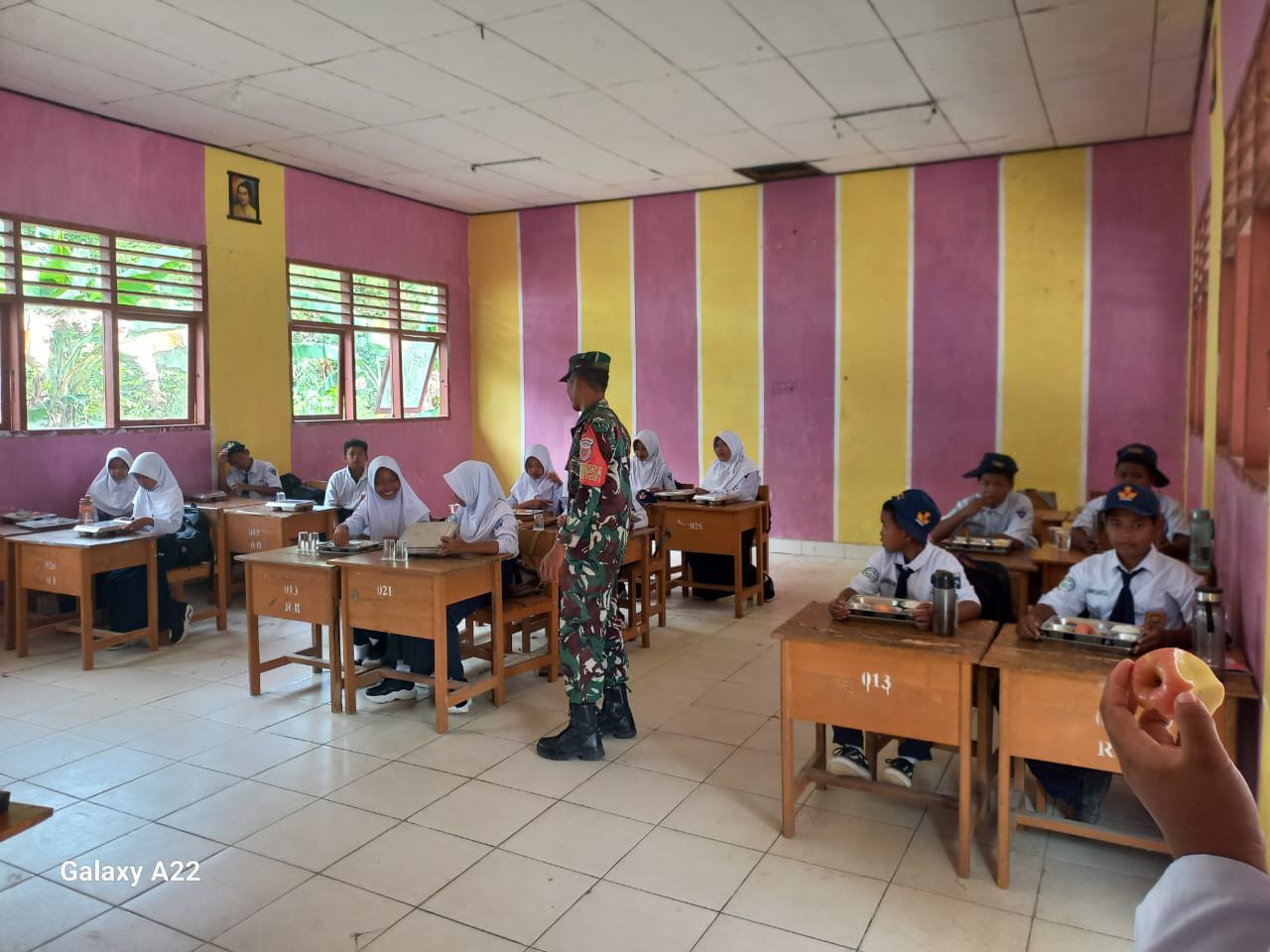 Sertu Deni Agus Subroto juga menjelaskan bahwa pendampingan ini bertujuan memastikan kelancaran pembagian makanan sekaligus memberikan edukasi kepada para siswa-siswi tentang pentingnya pola makan sehat.
