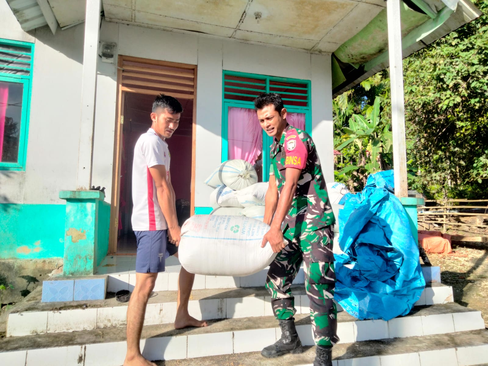 Serda Rahmad menuturkan kegiatan ini merupakan bentuk kemanunggalan TNI bersama rakyat demi mewujudkan swasembada pangan nasional Babinsa turun ke lapangan membantu petani untuk mengangkut hasil panen padi untuk di jemur.