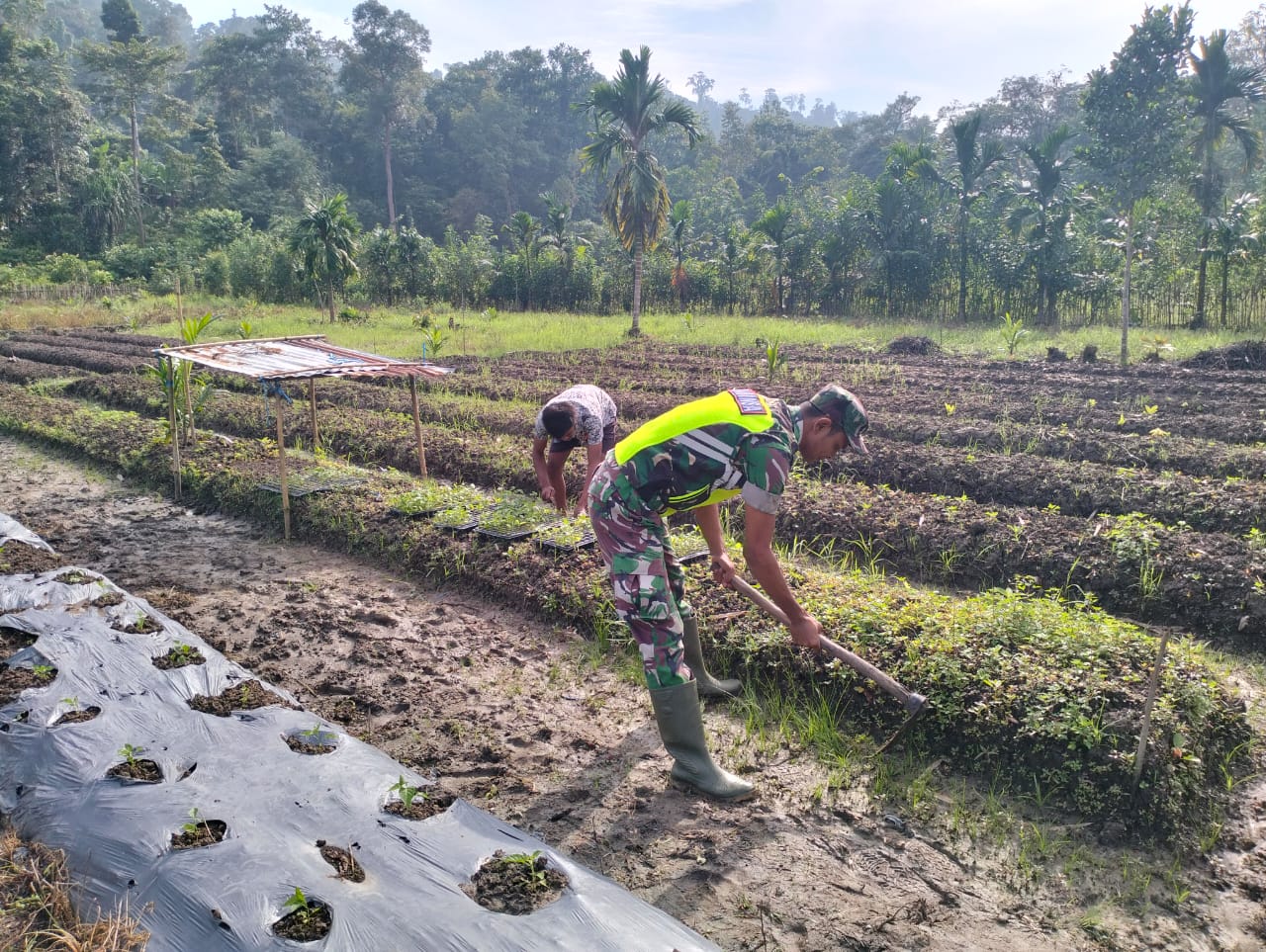 Dalam kegiatan ini, Serda Rahmad memberikan bantuan dan pendampingan kepada warga dalam menyiapkan lahan pertanian. Hal ini dilakukan dalam rangka mendukung peningkatan produktivitas pertanian.
