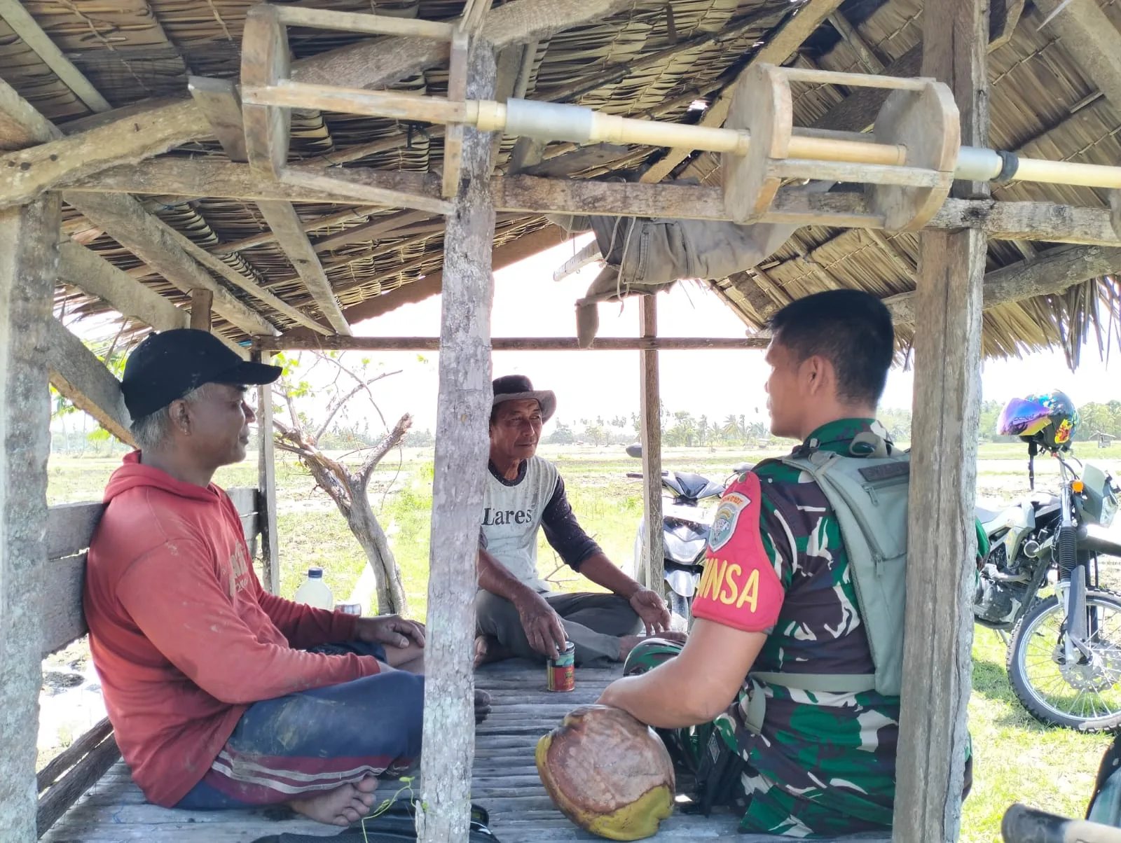 Babinsa Koramil 07/Kluet Selatan Serda Syaiful Bahri Harahap Beri Dukungan dan Motivasi kepada Petani di Desa Indra Damai