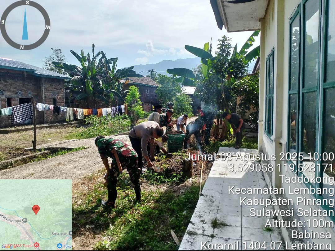 Pinrang_ Peduli kebersihan lingkungan ditunjukkan oleh jajaran Babinsa Koramil-07/Lembang Kodim 1404/Pinrang dengan melaksanakan kerja bakti bersama Staf Kecamatan Lembang dengan sasaran pembersihan halaman kantor Kecamatan Lembang Kabupaten Pinrang, Jum’at (08/08/2025).