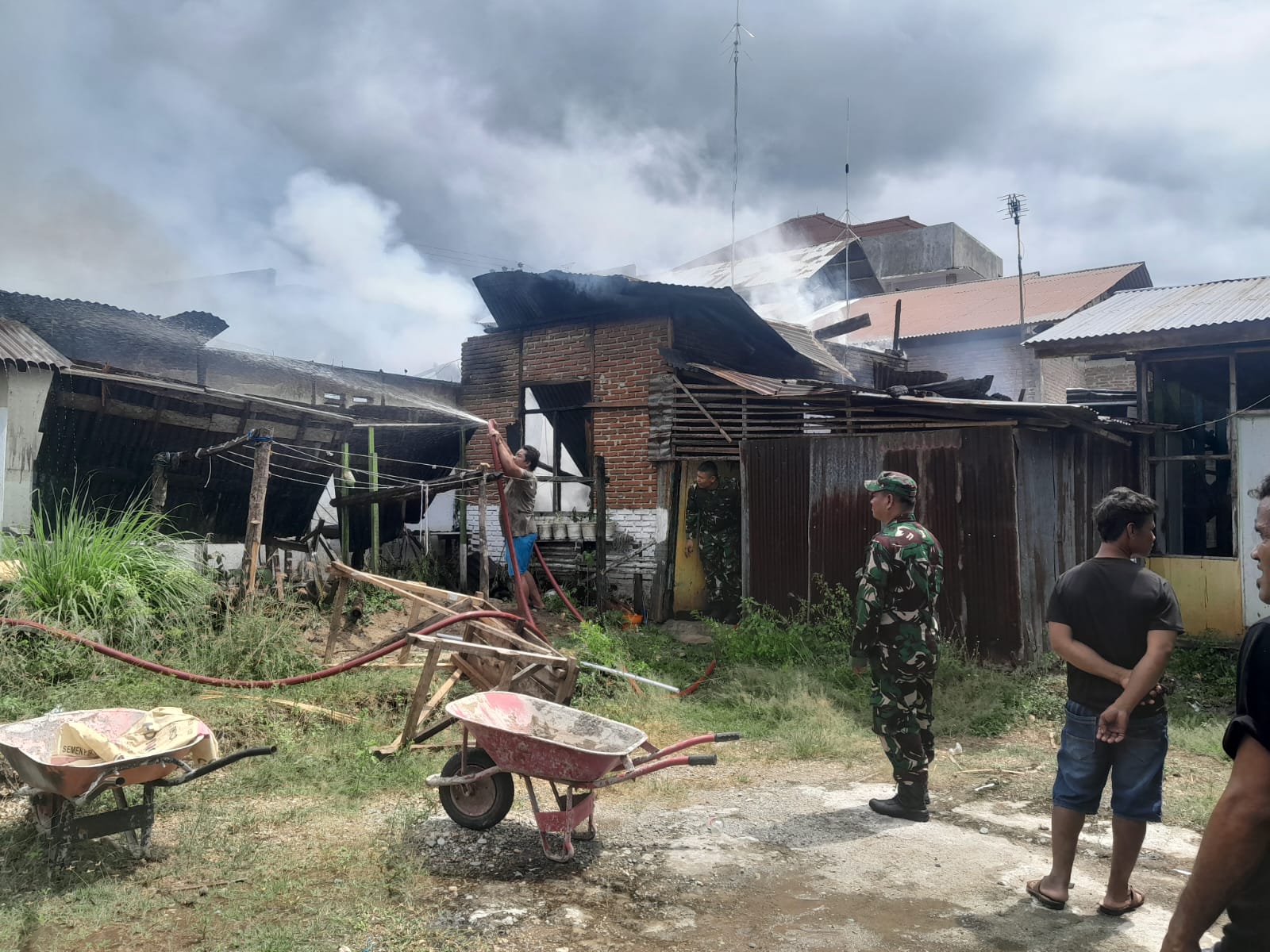 Kebakaran yang terjadi di Kel. Dembe I Kec. Kota Barat Kota Gorontalo pada hari ini sekitar pukul 12.30 Wita tersebut melanda rumah milik Bapak Umar Latif (57). Api dengan cepat membesar dan mengancam rumah-rumah di sekitarnya. Serda Khairul dan Kopda Sutrisno, yang saat itu sedang melaksanakan tugas pembinaan di wilayah binaannya, segera merespons kejadian tersebut.