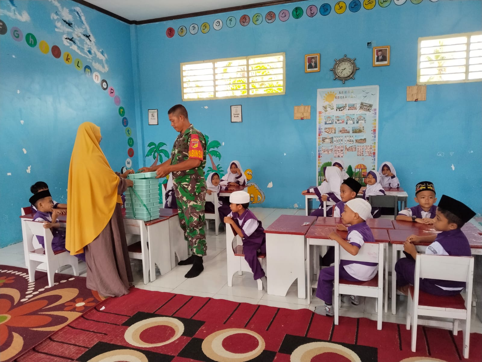 GORUT, Babinsa Koramil 1314-01/Kwandang, Serka Kasman, menunjukkan dedikasinya dalam mendukung kesehatan dan gizi anak-anak di wilayah binaannya. Beliau aktif terlibat dalam membantu mendistribusikan makanan bergizi ke berbagai sekolah diantaranya TKIT Al-Azfar, SDN 11 Kwandang, SMPN 1 Kwandang dan SMP Muhammadiyah Kwandang yang berada di Kecamatan Kwandang, Kabupaten Gorontalo Utara. Selasa (22/4/2025).