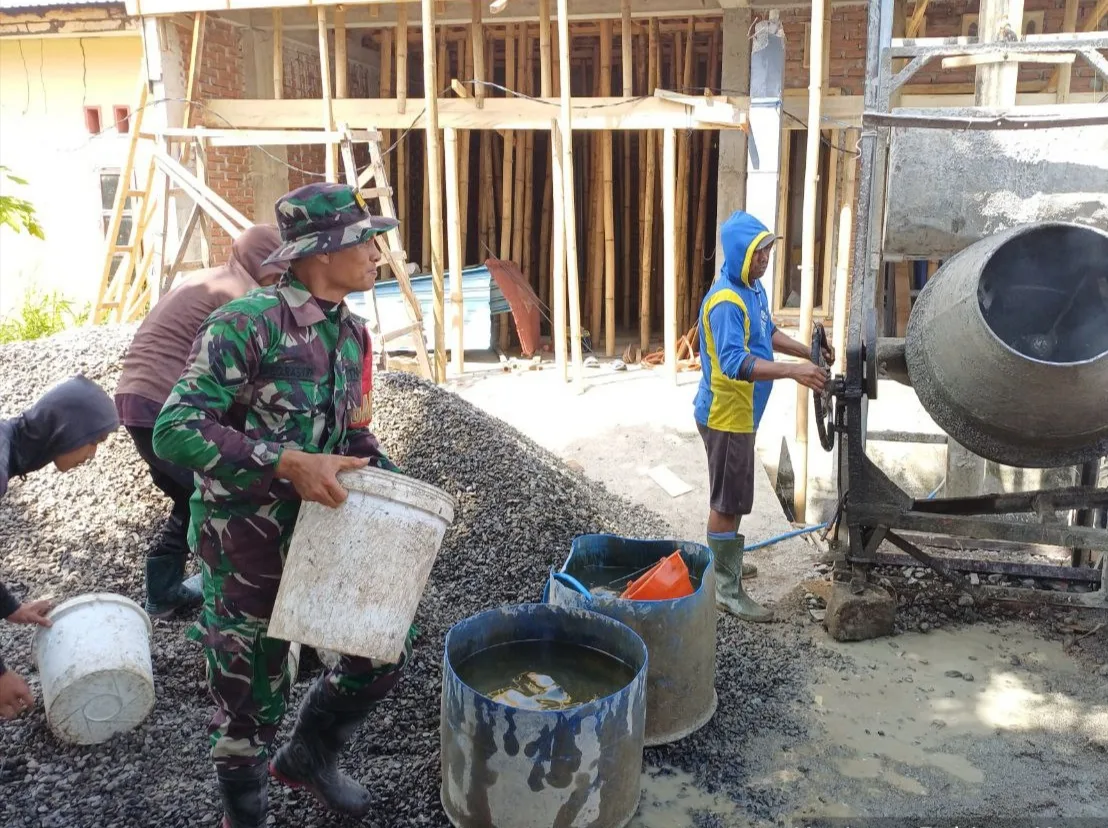 Pinrang_ Sebagai bentuk kepedulian serta upaya membangkitkan semangat gotong royong di tengah masyarakat, Babinsa Koramil 1404-04/Paleteang Kodim 1404/Pinrang Serda Abdul Rasyid melaksanakan kerja bakti bersama warga membantu proses pengecoran rumah milik salah satu warga di Lingkungan Sekkang Kelurahan Bentengnge Kecamatan Paleteang Kabupaten Pinrang, Kamis (29/01/2026).