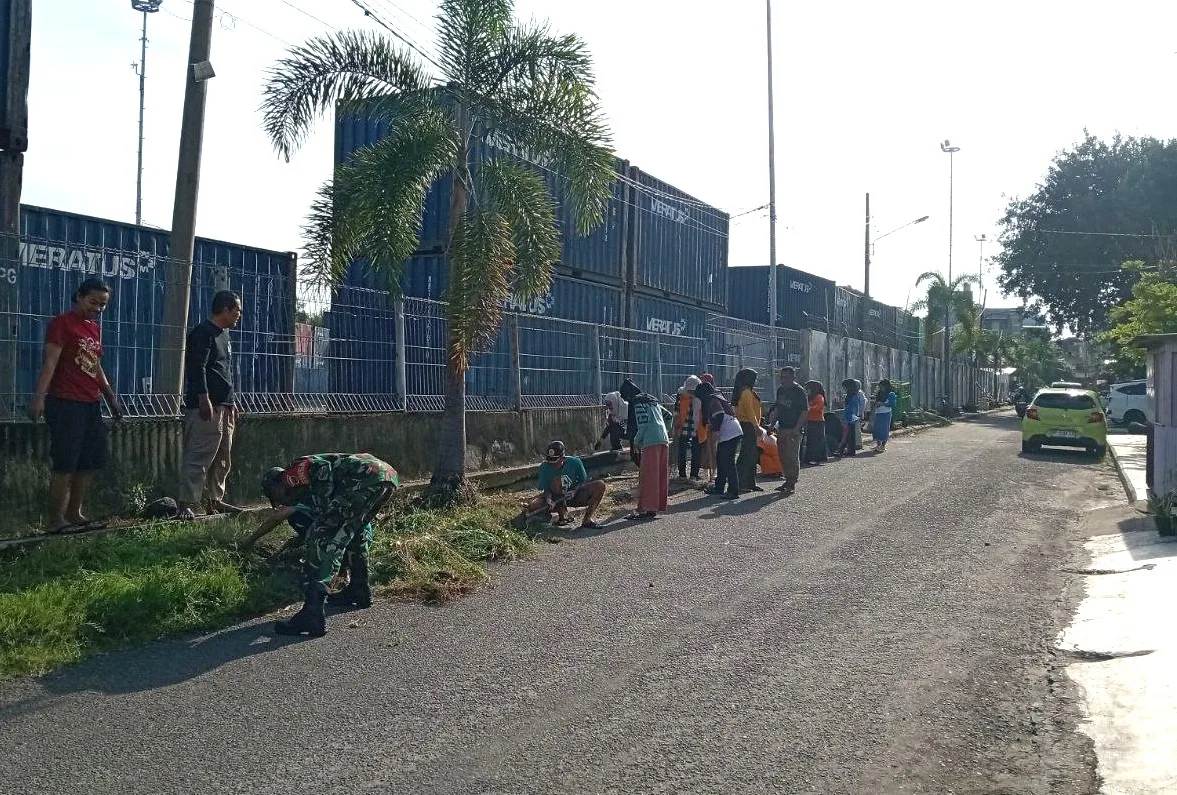 Kegiatan kerja bakti ini dilaksanakan sebagai bentuk kepedulian terhadap kebersihan lingkungan sekaligus mempererat kebersamaan antara aparat kelurahan, Babinsa, dan masyarakat.