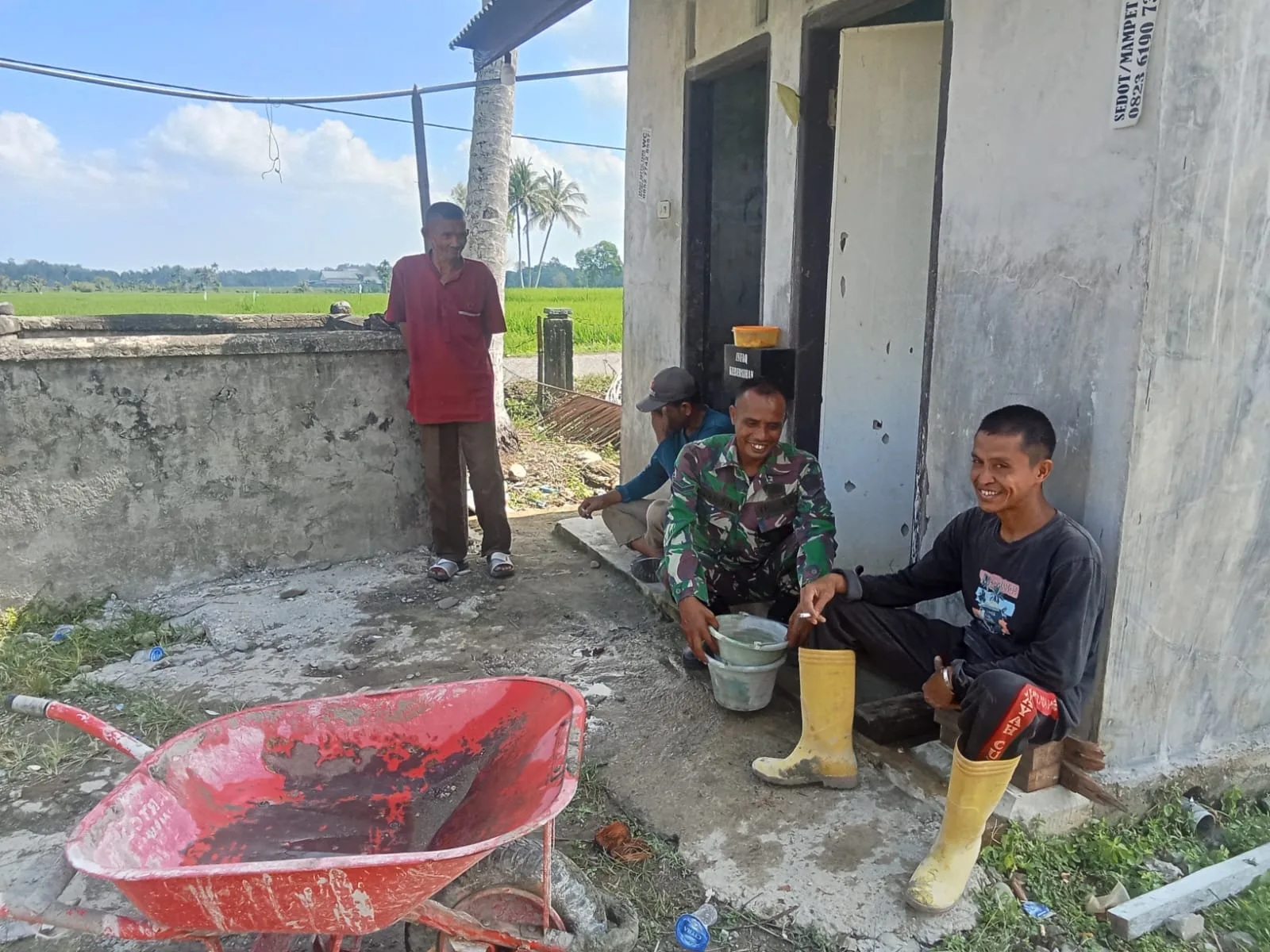 Kegiatan Komsos tersebut dilakukan secara santai dan penuh keakraban di sela-sela waktu istirahat warga yang sedang bekerja, sehingga tercipta suasana komunikasi yang hangat, terbuka, dan penuh kebersamaan.