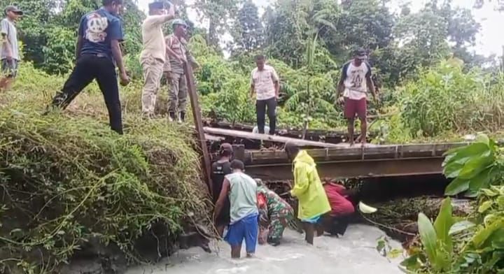 Serka la Alubi mengatakan bersama dengan masyarakat melaksanakan perbaikan jembatan yg rusak dengan menggunakan alat dan material seadanya.