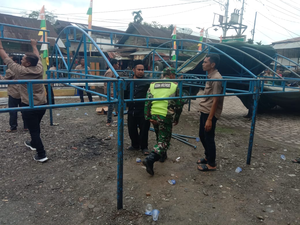 Pidie – Wujud kepedulian TNI terhadap masyarakat kembali ditunjukkan melalui kegiatan Karya Bakti yang dilakukan Babinsa Koramil 16/Tangse Kodim 0102/Pidie, Serka Purnama. Ia bersama warga bergotong royong memasang tenda untuk persiapan peringatan Maulid Nabi Muhammad SAW di Desa Blang Dhot, Kecamatan Tangse, Kabupaten Pidie.Sabtu (27/09/2025).