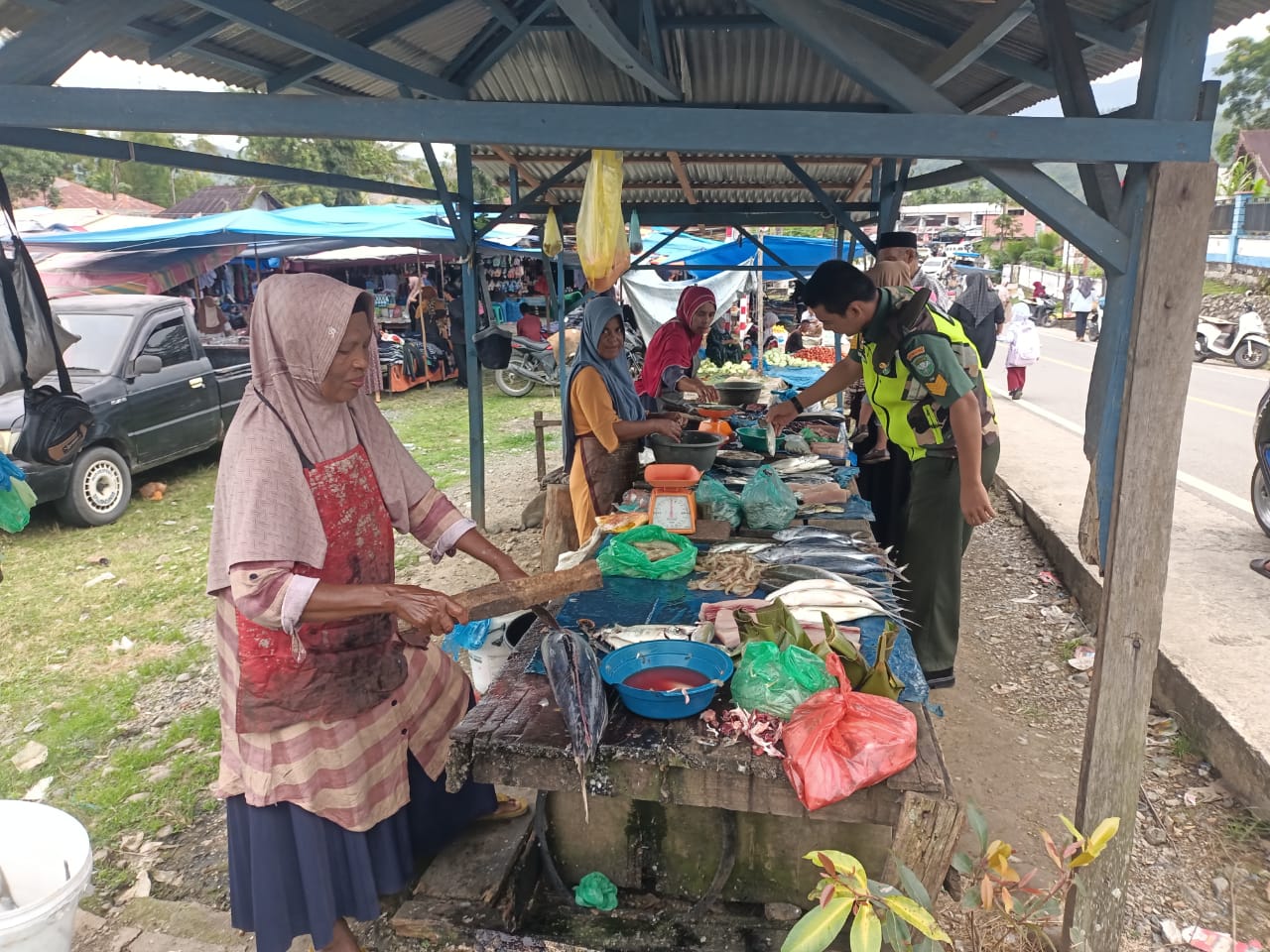 Pidie – Babinsa Koramil 16/Tangse Kodim 0102/Pidie, Serma Taufik Maulana, melaksanakan komunikasi sosial (Komsos) bersama para pedagang ikan di Kecamatan Tangse, Kabupaten Pidie, Senin (22/09/2025).
