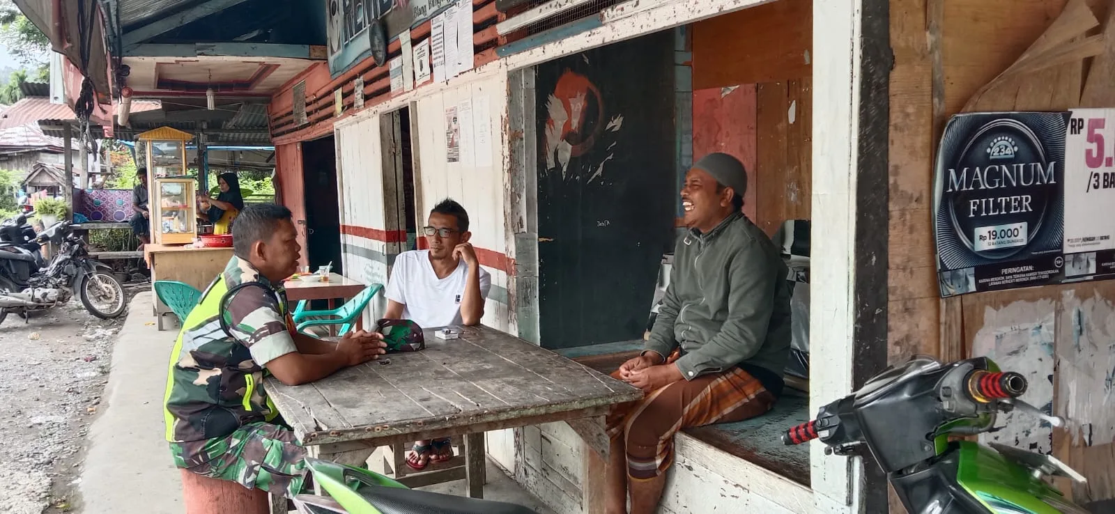 Dalam suasana penuh kehangatan Lebaran, Serka Arifuddin menyempatkan diri berinteraksi langsung dengan masyarakat, memperkuat kedekatan serta menjalin komunikasi sosial yang harmonis antara TNI dan warga.