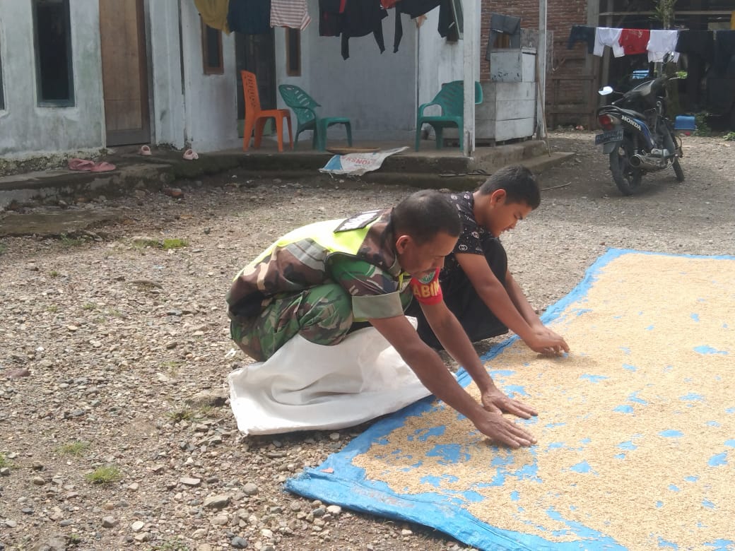 Pidie – Peran aktif TNI dalam mendampingi masyarakat kembali terlihat di Desa Pucok, Kecamatan Geumpang, Kabupaten Pidie. Babinsa Koramil 17/Geumpang, Serma Abu Bakar, melaksanakan kegiatan komunikasi sosial sekaligus membantu warga menjemur padi pada Kamis (19/06/2025).